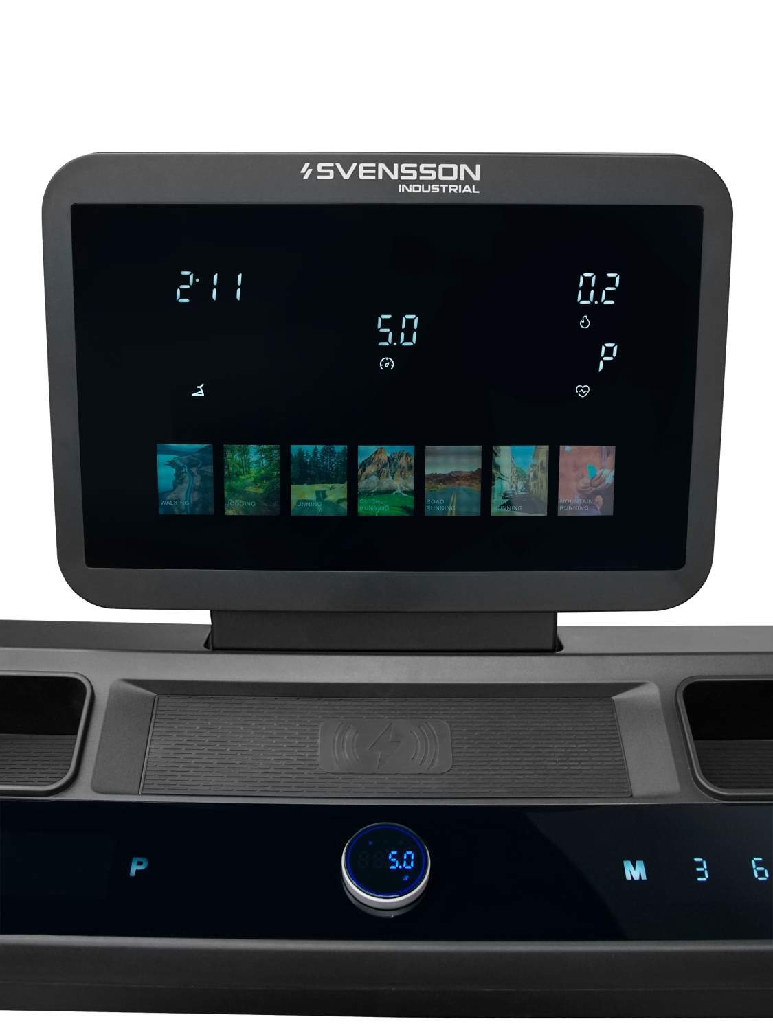 Консоль продумана для реальной тренировки: яркий LED-дисплей с русским интерфейсом, сенсорная панель, быстрые кнопки на поручнях с подсветкой, удобная шайба управления. Всё под рукой и интуитивно понятно. Поддерживаются приложения FITSHOW, KINOMAP и ZWIFT, есть подключение Bluetooth-кардиодатчика.