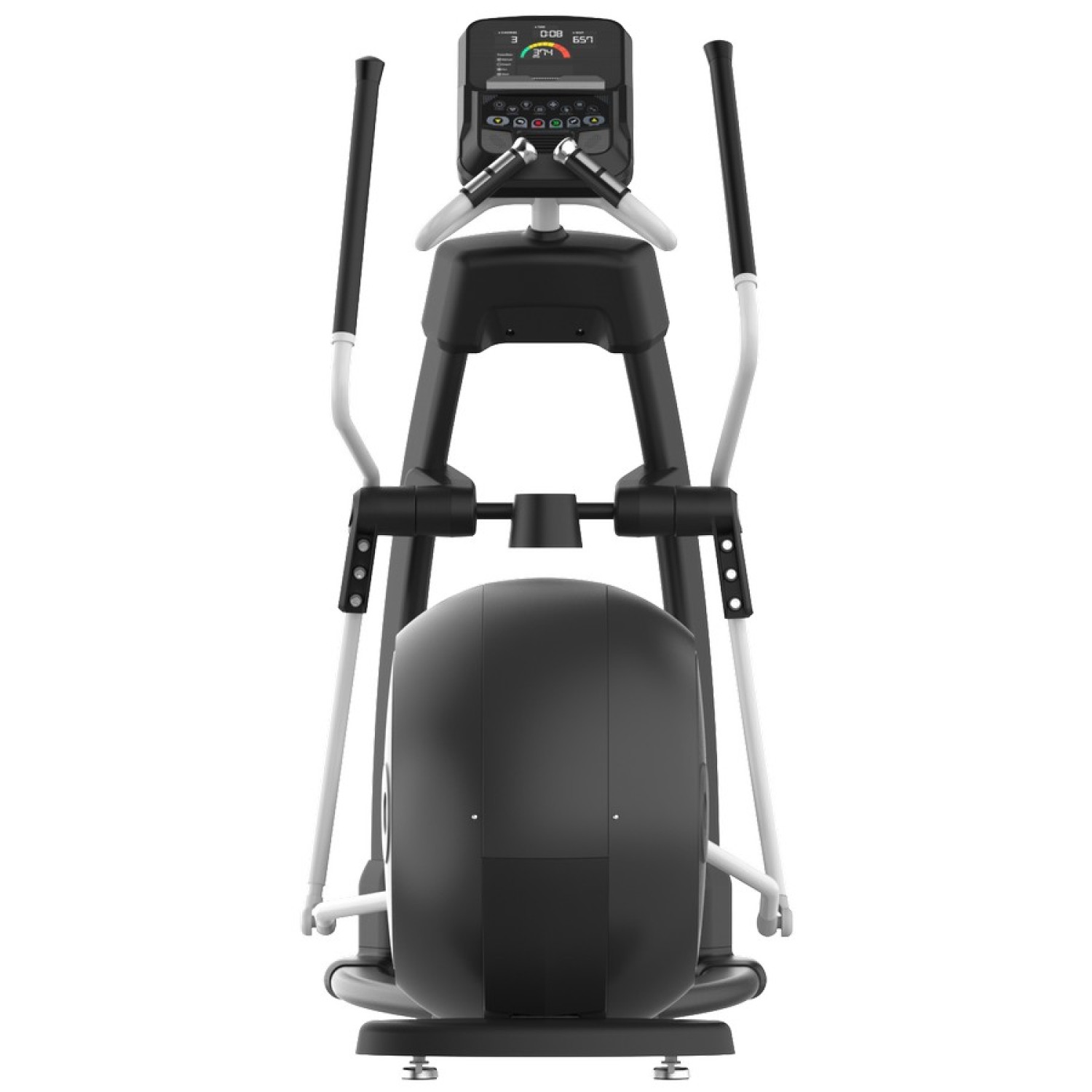 Консоль тренажера имеет простое управление с помощью 6 основных кнопок управления и 8 кнопок для быстрого доступа к программам и функциям эллипсоида. Консоль разделена на 6 зон - центральную нижнюю часть занимает основное матричное окно с белой подсветкой, которое отображает диаграмму сегментов тренировки, приветствия и системные ошибки, слева от него окошко с индикаторами текущего режима тренировки. В центральное части расположен цветной LCD дисплей, показывающий скорость в об/мин, а над ним три LCD с белой подсветкой для основных показателей тренировки, таких как время, калории, дистанция и др.