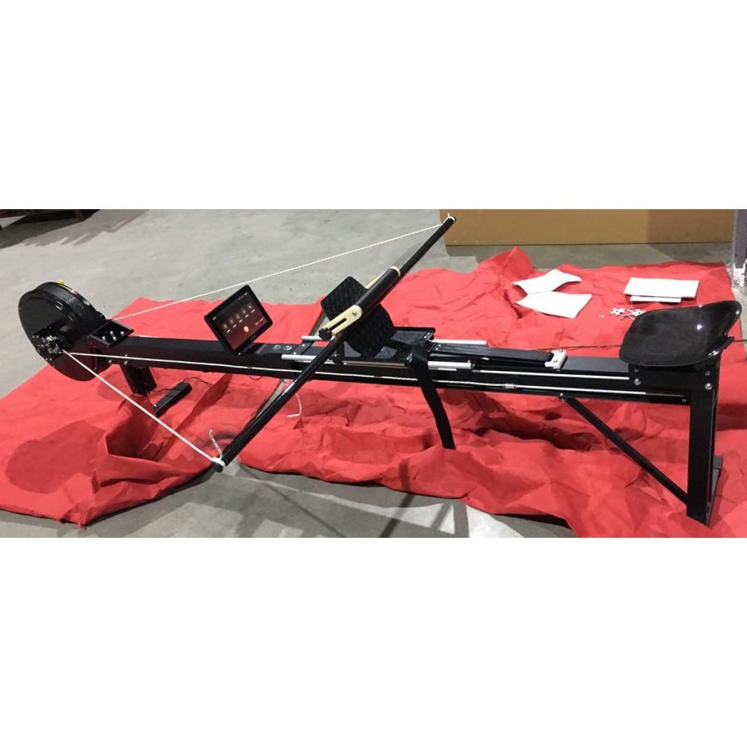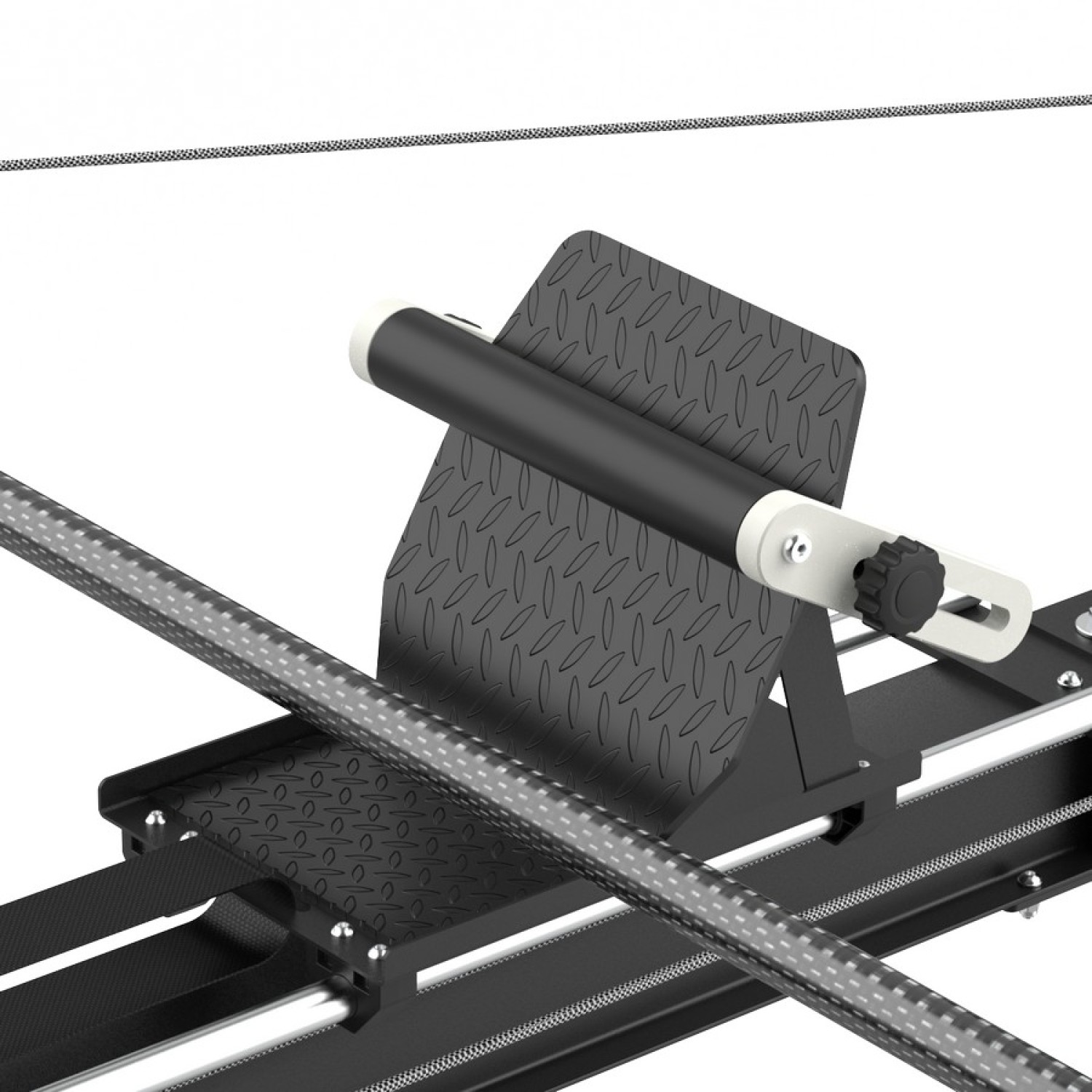 В качестве привода используется шнур из сверхпрочного материала - высокомолекулярного полиэтилена (СВМПЭ). Общая рукоятка тренажера покрытая нескользящим материалом, и приводится в движение шнуром и системой шкивов. Для упора ногами предусмотрена подставка из нескользящей рифленой стали, расположенная под правильным биомеханическим углом и обрезиненный фиксатор стопы. Фиксатор имеет несколько положений для регулировки под разный размер ноги.