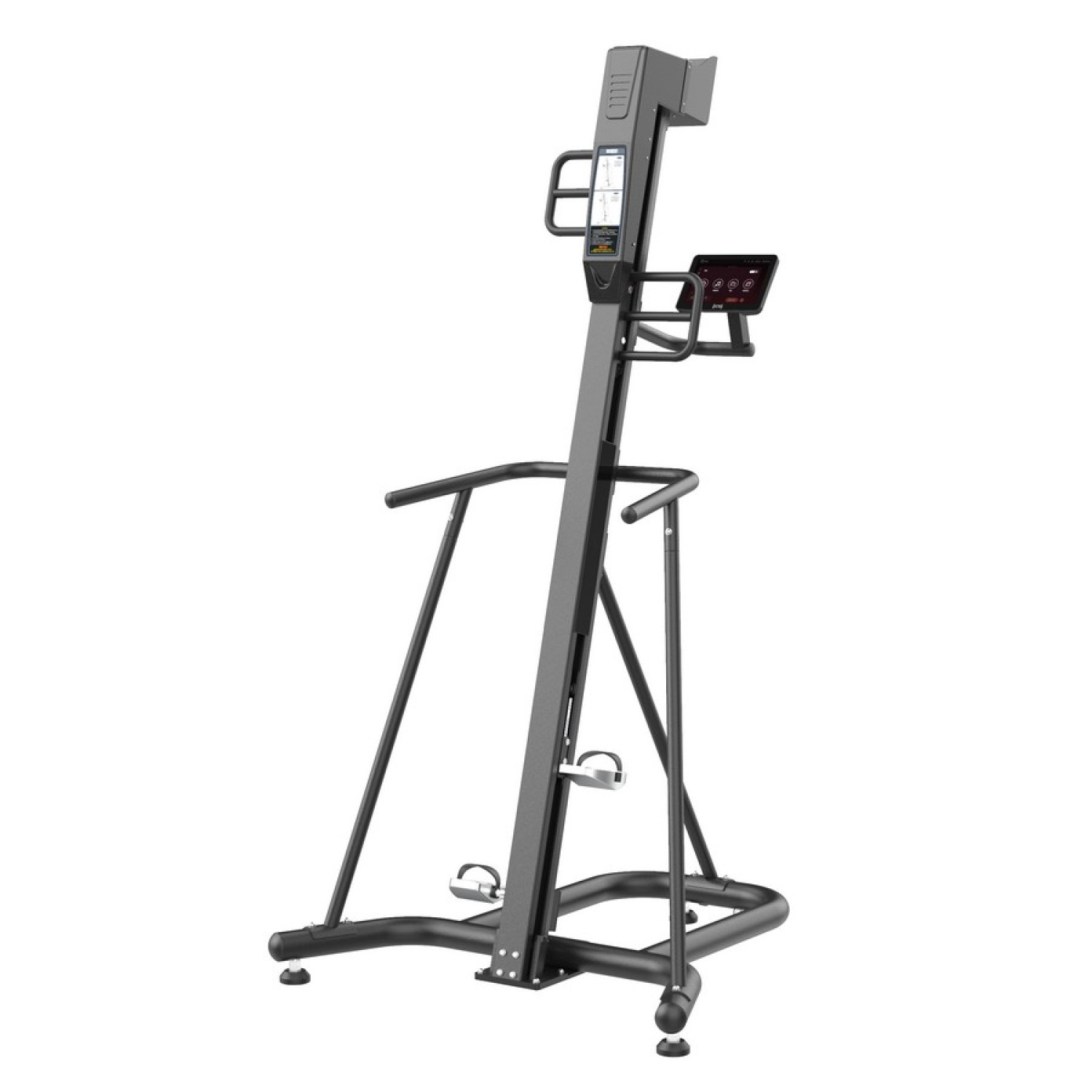 Профессиональный тренажер Альпинист (климбер) Gymmaster ST6001C c цветным TFT тачскрин дисплеем с диагональю 10,11 дюйма (25,5 см) имеет прочную и устойчивую конструкцию, не смотря на свою большую высоту и стоит на широком основании с 4-мя регулируемыми по уровню ножками. Имитирует движения скалолаза и хорошо развивает силу рук и ног. Для тренировки без участия рук, в режиме степпера, предусмотрены большие опорные поручни с нескользящим покрытием.