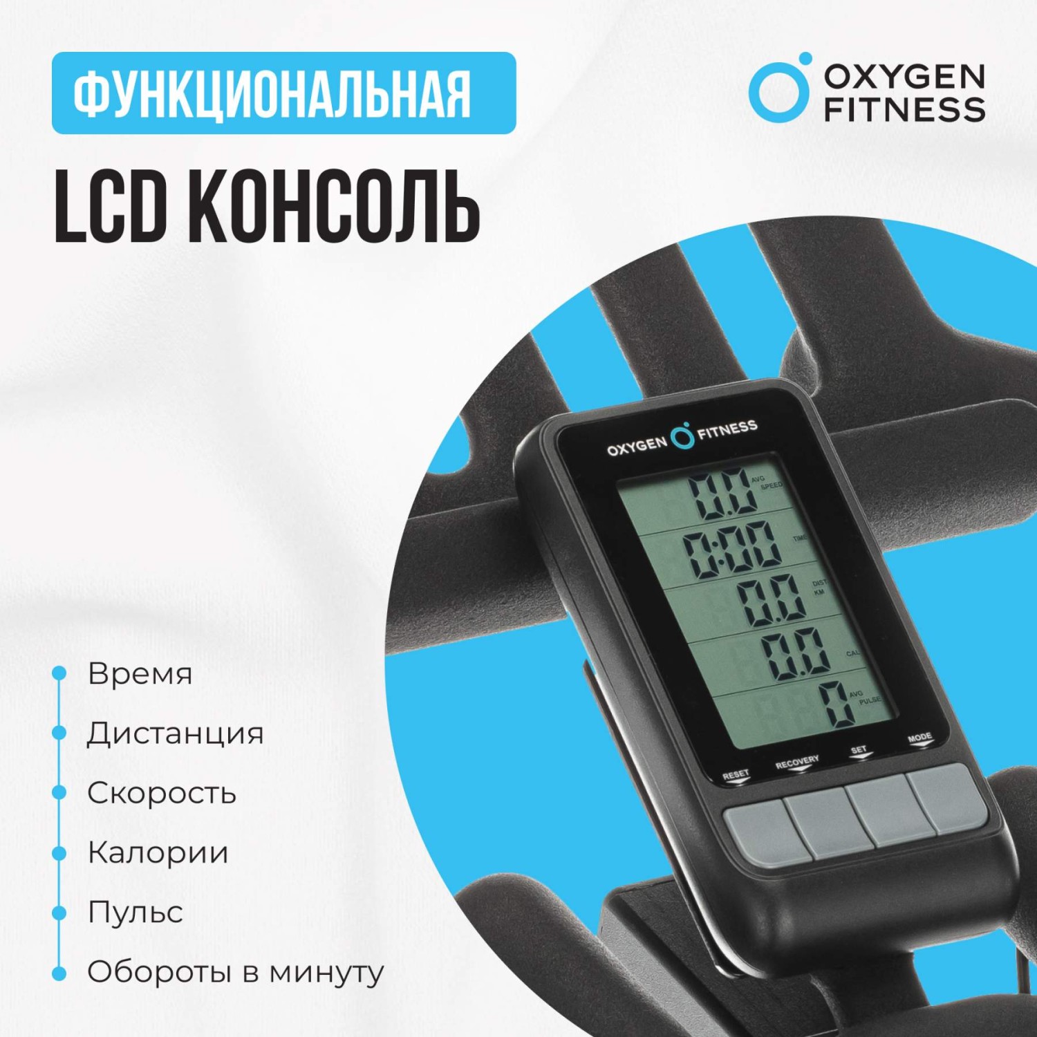 Монохромный LCD дисплей консоли отображает информацию о времени, скорости, дистанции, калориях, пульсе и оборотах в минуту, обеспечивая полный контроль над вашим заездом. Спин-байк OXYGEN FITNESS SPIN TURBO предусматривает ручной режим и быстрый старт, что позволяет использовать тренажер как профессионалам, так и новичкам. Языки интерфейса — русский и английский, делают использование тренажера максимально удобным для всех пользователей. Подставка под планшет, транспортировочные ролики и компенсаторы неровностей пола, делают использование тренажера еще более простым и удобным.