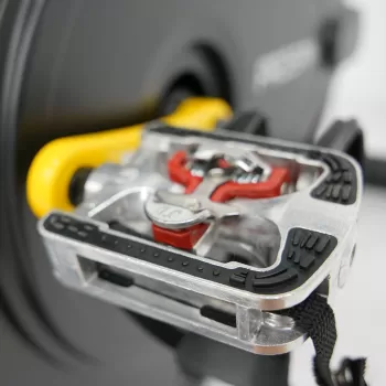 К числу других преимуществ BRONZE GYM PROSPIN относятся быстро настраиваемые компенсаторы неровностей пола, износостойкие полиуретановые транспортировочные ролики и держатель для бутылки. Многопозиционный руль с подлокотниками, полностью закрытый от влаги прорезиненной полиуретановой защитой, дает возможность принять спортивное «шоссейное» положение. Помимо всего прочего, здесь стоят отличные педали 2 в одном. Они выполнены по технологии «Toe clip» (система рамок и ремешков на педали для крепления ноги) и, кроме того, подготовлены для использования специальной велообуви (необходим SPD переходник, приобретается отдельно). Максимальный вес пользователя 150 кг.