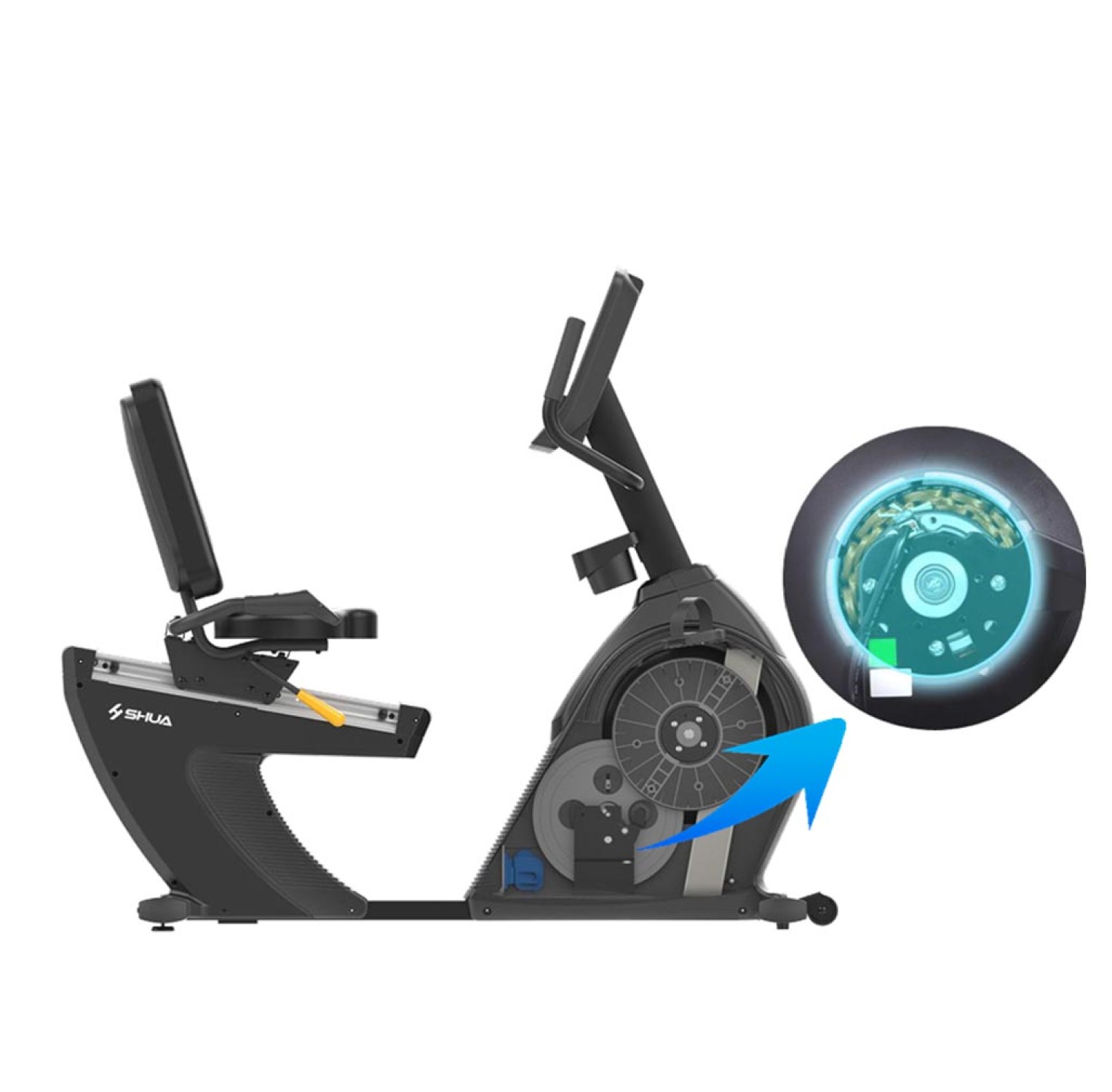 Велотренажер горизонтальный SHUA SH-B6500R - кардиотренажер для легкого коммерческого и домашнего применения. Подходит для работы в фитнес-клубах, тренажерных залах со средней проходимостью или для использования в домашних тренировках. Отличается большим количеством уровней сопротивления, наличием USB-входа под зарядку, аудиовходом, стереодинамиками и рукоятками c кардиодатчиками. Консоль тренажера снабжена вентилятором, поддерживает bluetooth соединение.