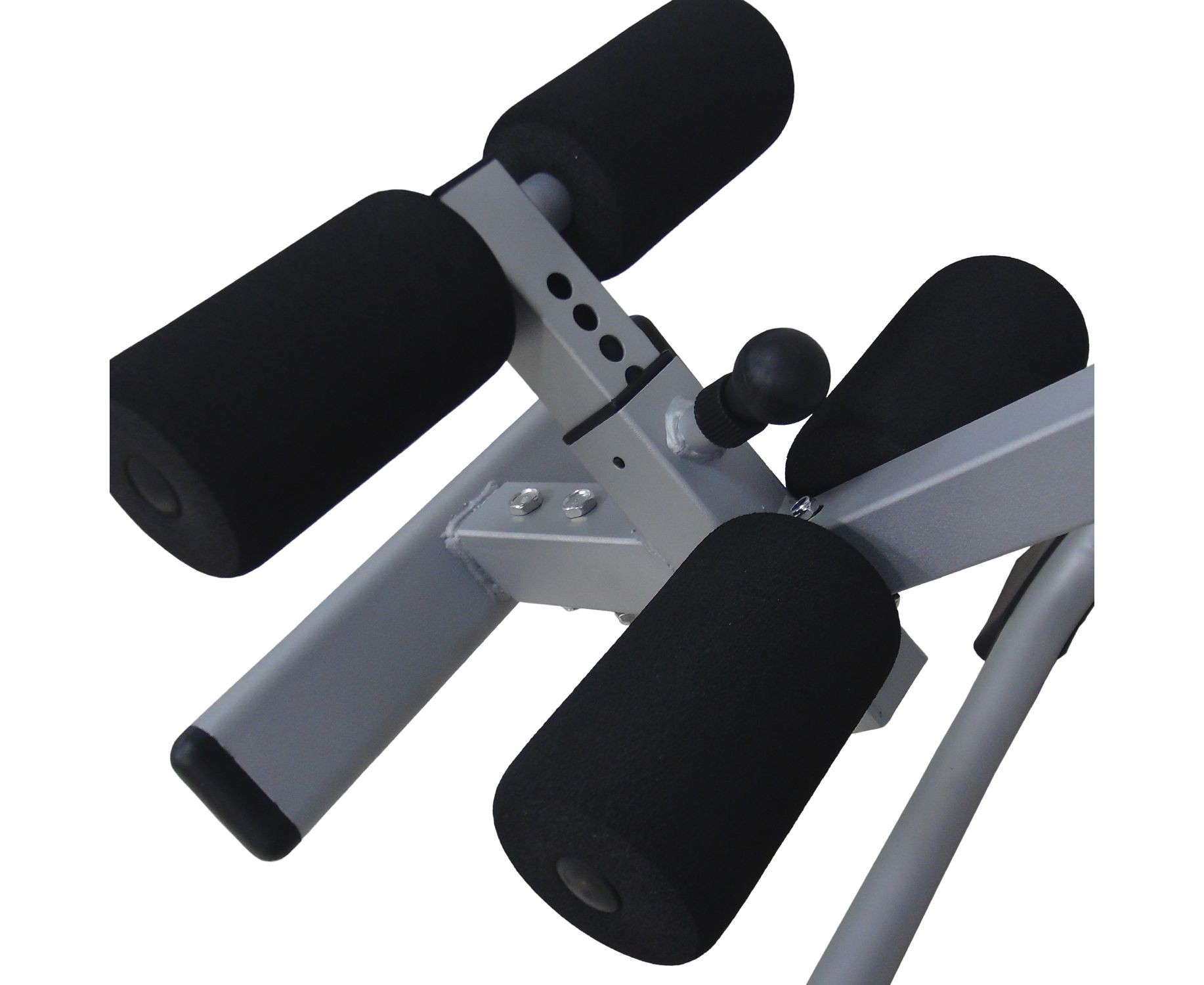 Стол позволяет зафиксировать нужный угол наклона с помощью ремня и перекладины. До начала занятия наклоните стол до нужного уровня и подтяните ремень. Если снять ограничительную перекладину, то возможно отклонится в вертикальное положение (головой в пол).