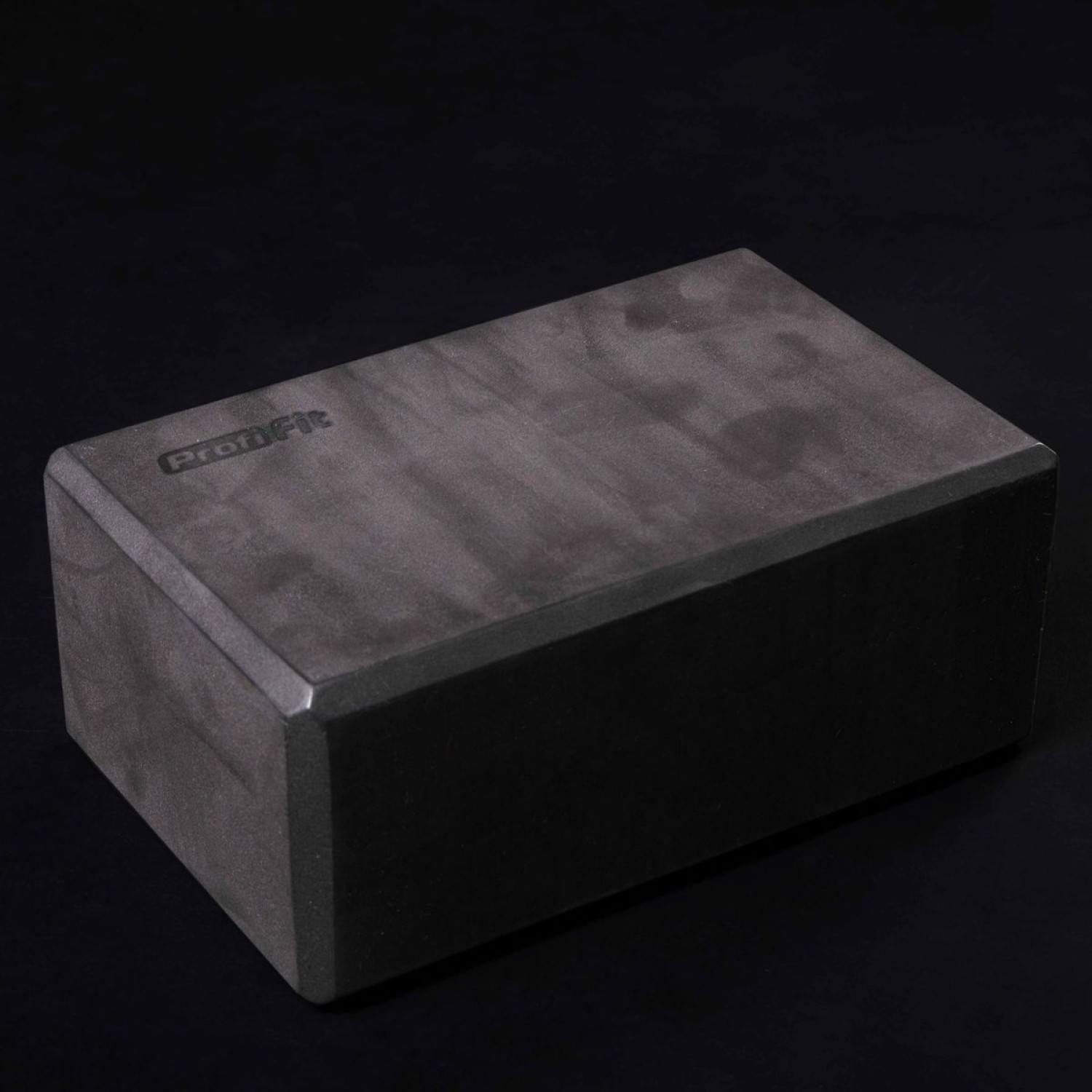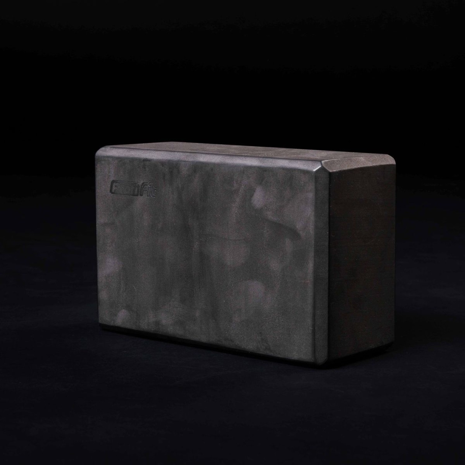 Опорный блок для занятий йогой, прямоугольной формы, черного цвета, сплошной конструкции без отверстий и полостей.