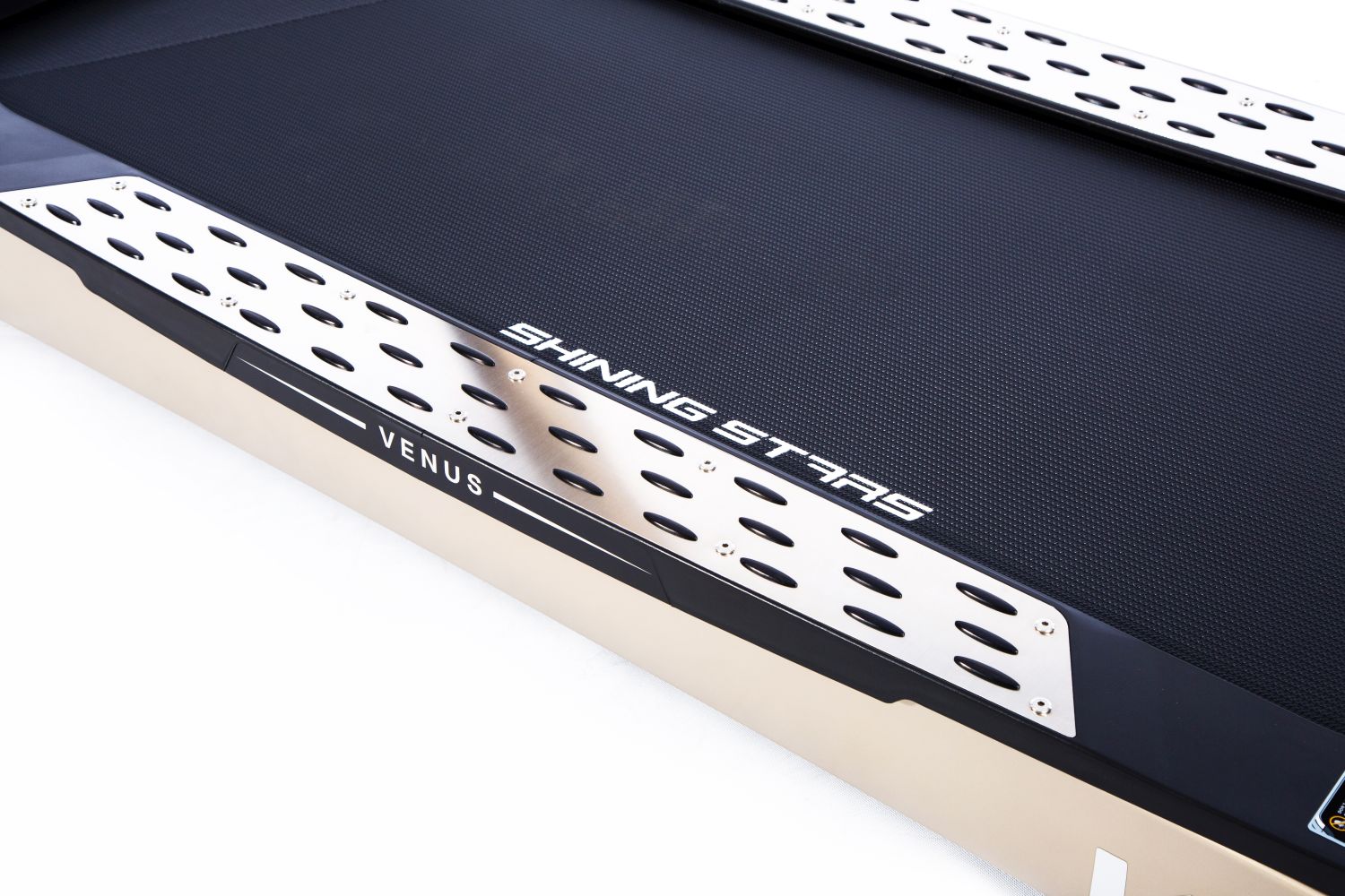 Мощный двигатель способный работать 24/7, безопасное противоскользящее беговое полотно большой площади и толщиной 2.3 мм, большая консоль 18.5 LED с мультимедиа функциями и стильный дизайн - все это делает беговые дорожки «Shining Stars» комфортными, безопасными и эффективными для использования.