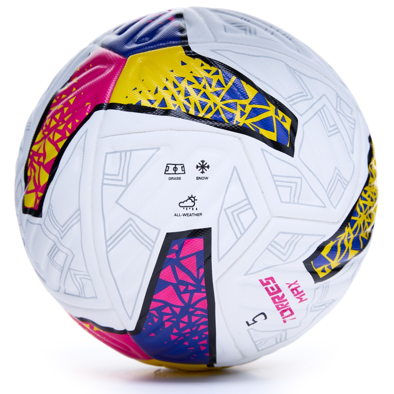 Мяч изготовлен из мягкого полиуретана HPU Berkley White, толщиной 0.75 мм на тканой основе. Этот материал обладает высокой эластичностью, термостойкостью, устойчивостью к агрессивным средам и усиленными гидрофобными свойствами, т.е. отталкивающими влагу. Крупное рельефное тиснение образует литые желобки по всей поверхности, что повышает аэродинамические характеристики, максимально стабилизирует траекторию полета мяча, минимизируя его отклонение. Структурированная поверхность полиуретана значительно улучшает сцепление между мячом, бутсами и перчатками способствует лучшей передаче силы удара. Слой высокотехнологичной 3-мм сверхмягкой пены, ламинированный прочной поливискозой с использованием латексного клея, делает мяч супермягким и износостойким.
