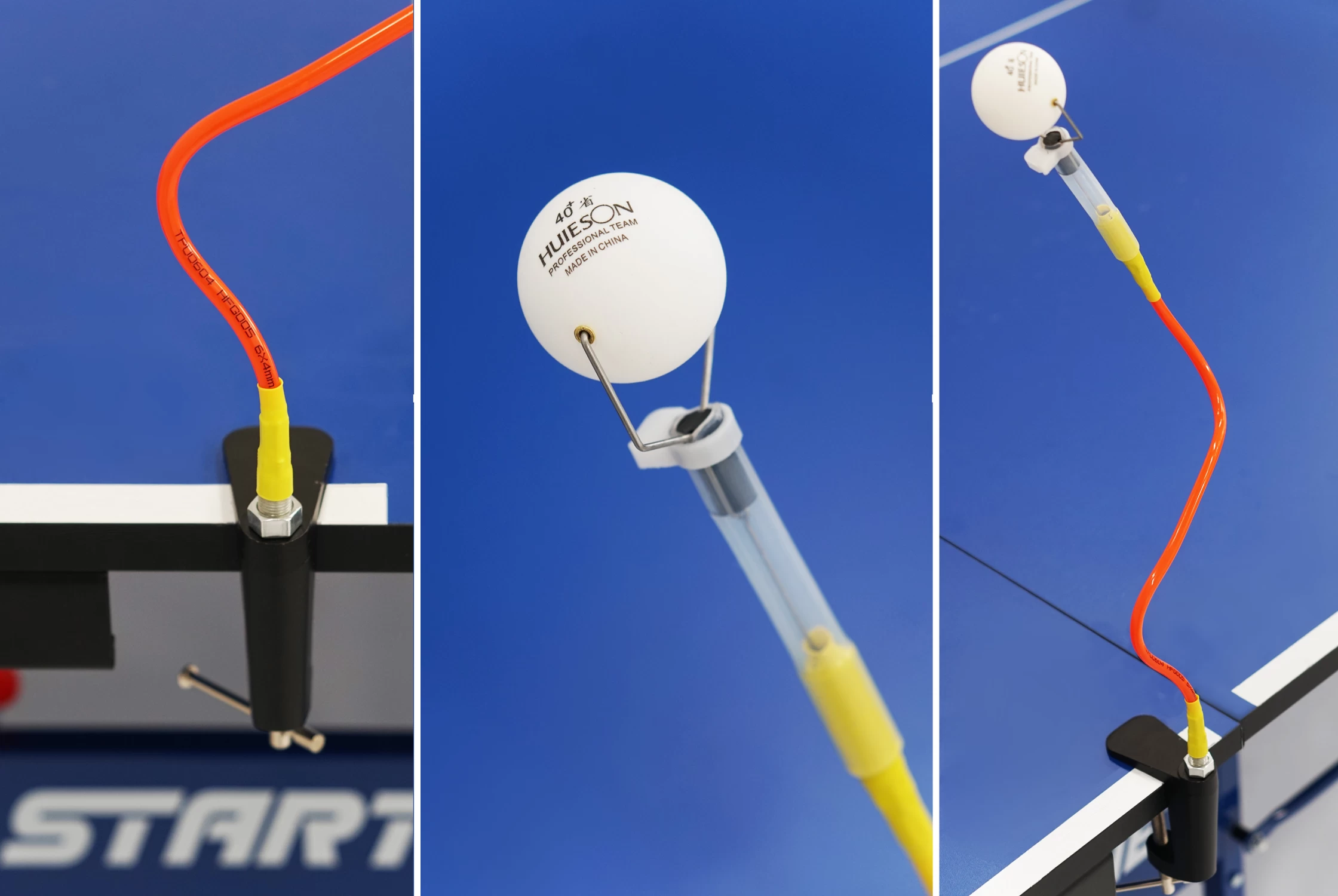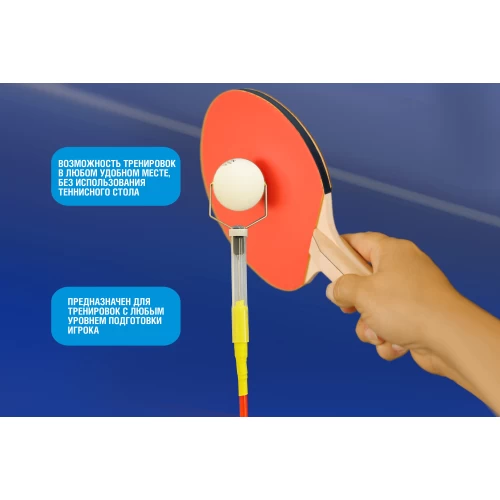 Тренажер для настольного тенниса 03-10 на гибком держателе предназначен для обучения новичков технике ударов по мячу слева и справа, технике подач, технике передвижения в разных направлениях, обучение и корректировка техники ударов по мячу или отдельных частей ударных движений.