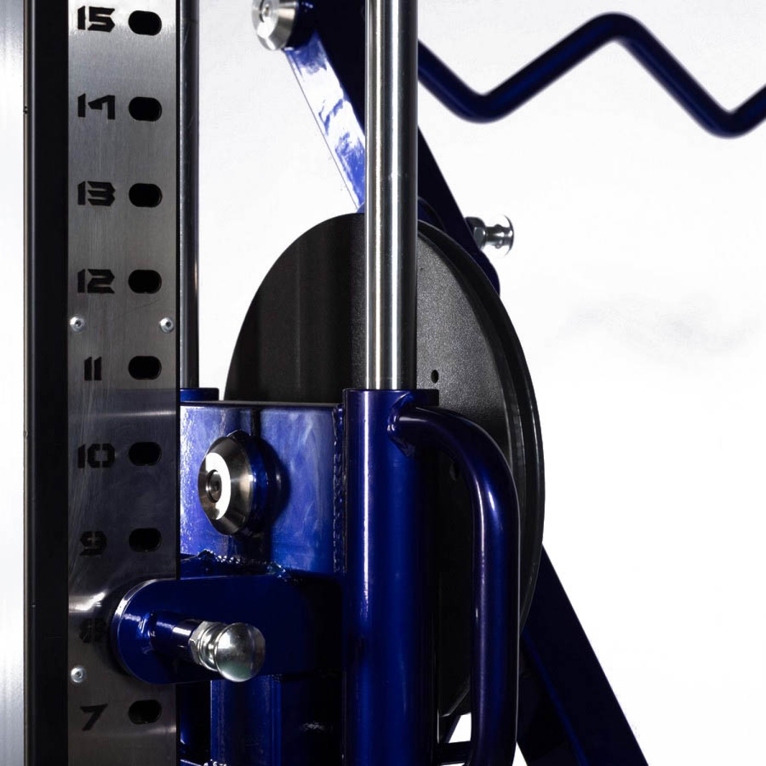 Не смотря на простой и компактный дизайн, тренажер имеет очень продуманную эргономику. Рычаг регулируется в 16 позициях с вращением на 360 градусов, а также имеет регулировку по высоте, которая реализована на двух направляющих с линейными подшипниками и газ-лифте. Это позволяет быстро поменять высоту, без усилий, и подогнать рычаг под любой рост и под нужное упражнение.