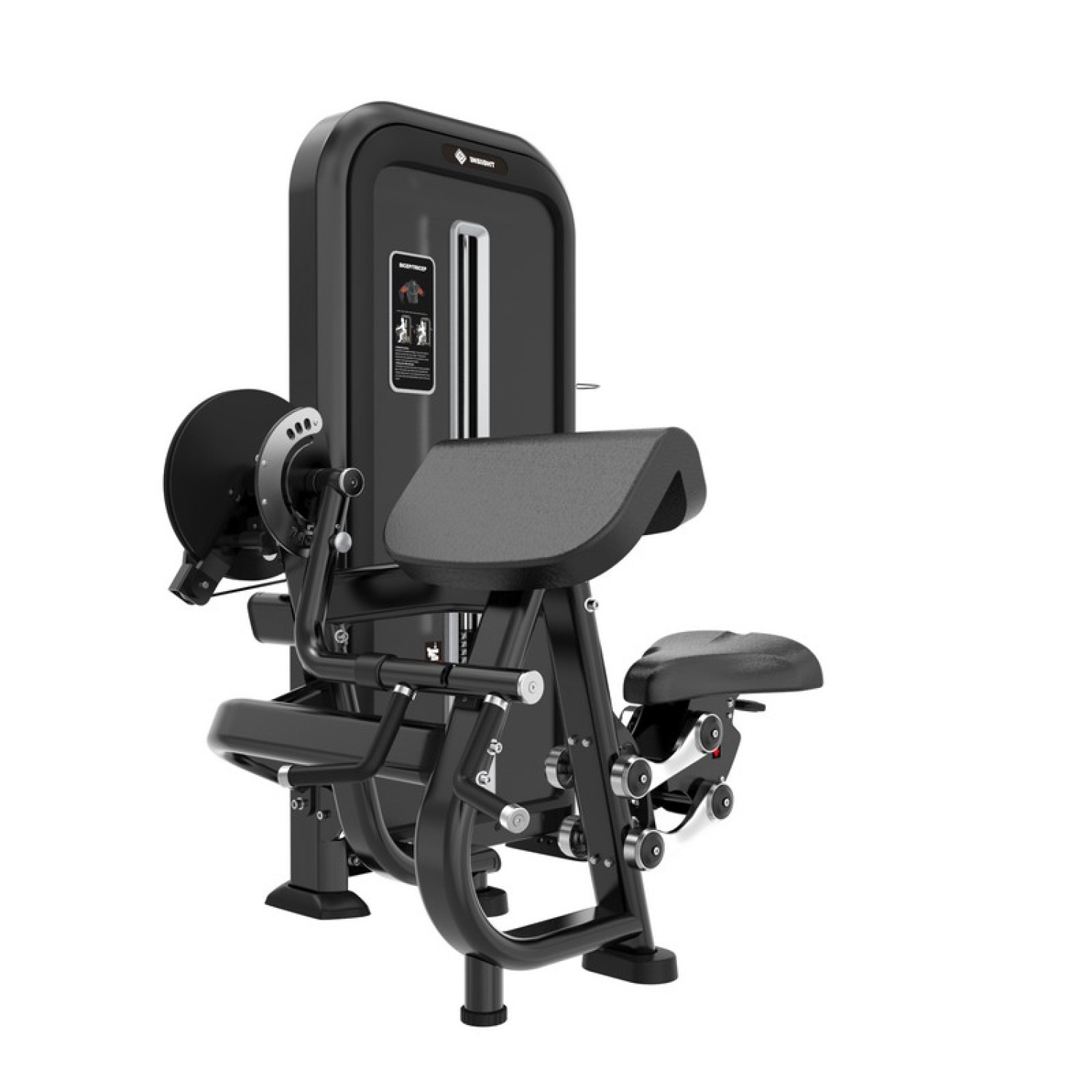 Бицепс трицепс-машина Insight Fitness TY26 - двойной профессиональный тренажер (класс S) для выполнения упражнений на сгибание рук на бицепс и трицепс сидя. Данное оборудование экономит место в тренажерном зале и расходы на приобретение, так как совмещает в себе два тренажера. Предназначен для целенаправленной тренировки трицепсов - мышц, ответственных за укрепление и формирование задней части руки - от плеча до локтя, а также для эффективной проработки бицепсов и развития силы в верхней части рук. Этот тренажер придает уникальность тренировке мышц рук, благодаря своей блочной системе, которая позволяет точно настраивать нагрузку в диапазоне от 5 до 110 кг с шагом 5 кг.