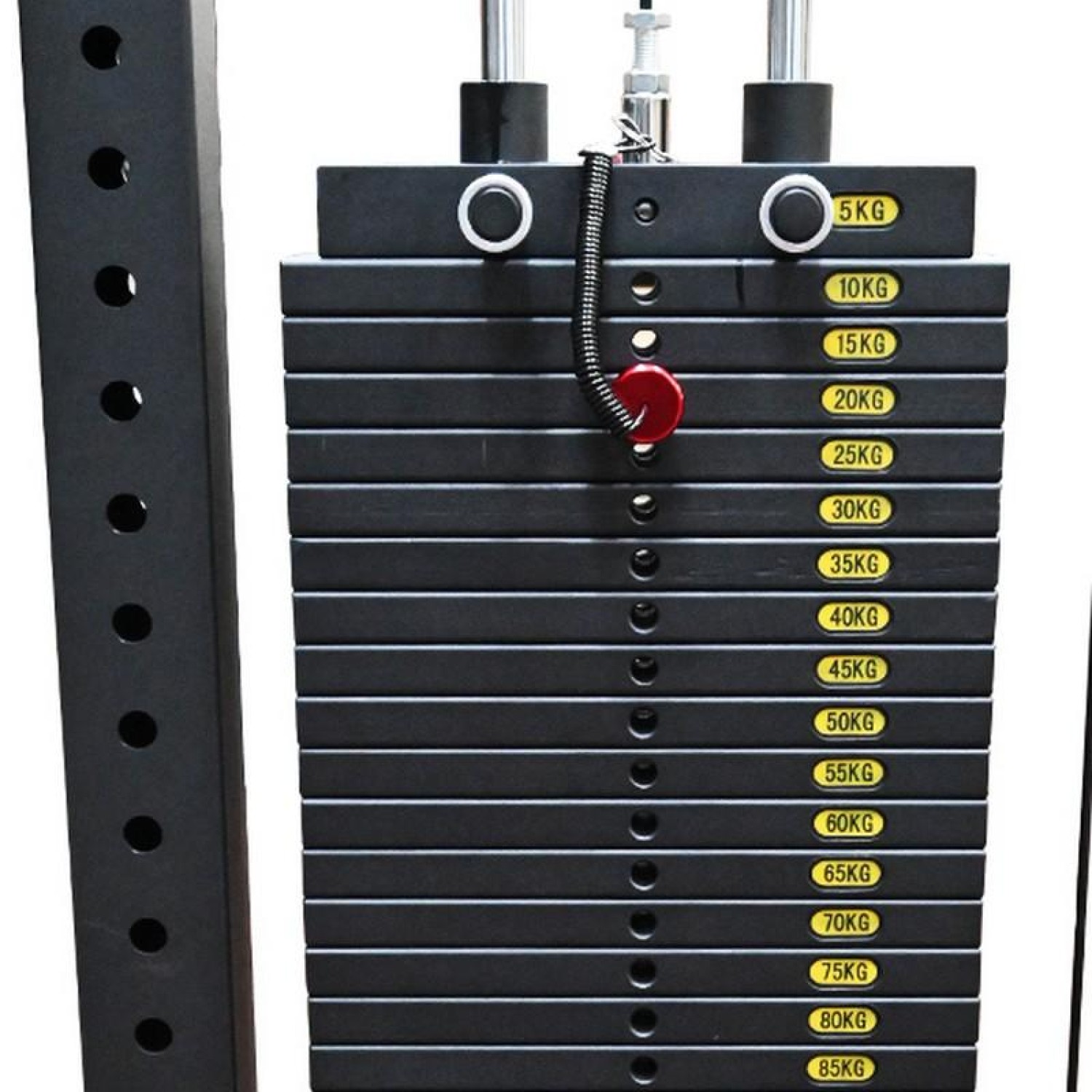 Кол-во весовых плит: 15 х 5 кг + верхний стек 5 кг.