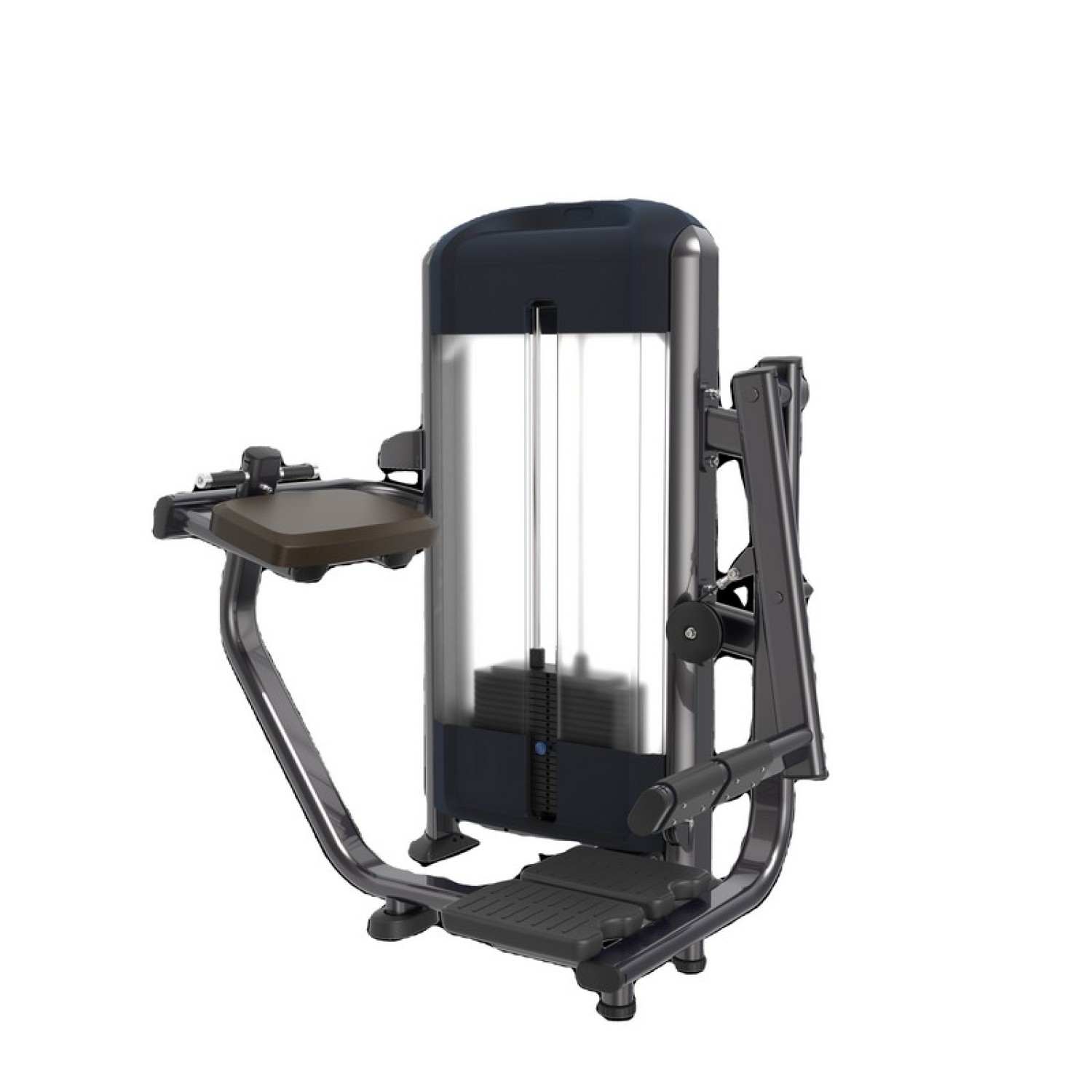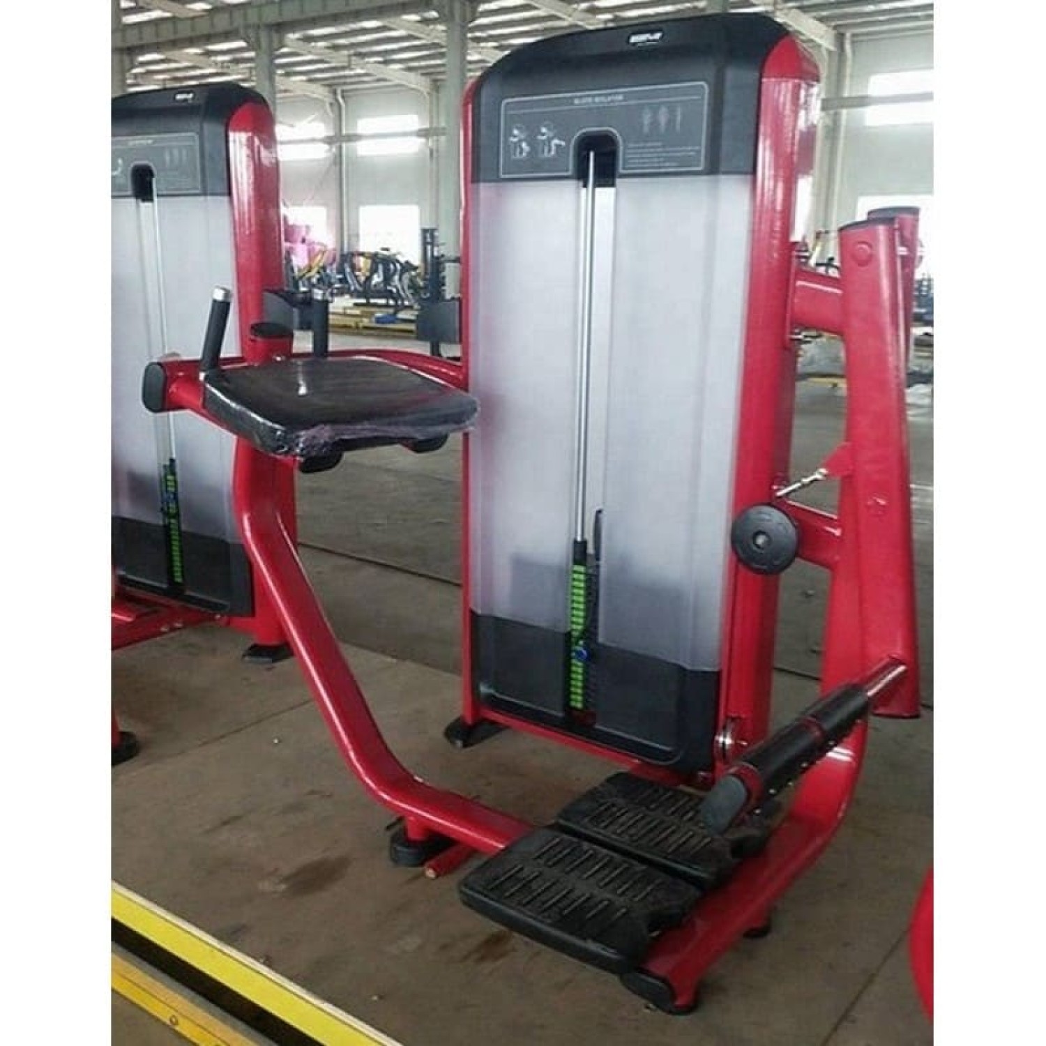Тренажер для ягодиц позволяет тренироваться людям разной комплекции, благодаря рычагу с большой амплитудой движения. Двойные платформы для ног с обрезиненной и нескользящей текстурной поверхностью надежно фиксируют опорную ногу во время тренировки. Правильное положение и надежная фиксация верхней тела достигается за счет, расположенной под углом подушки для локтей, которая снижает давление на руки и позвоночник, а также двух рукояток, покрытых нескользящим резиновым материалом. Толкающая нога надежно удерживается на рычаге, даже при работе с большими весами, благодаря резиновым текстурным накладкам.