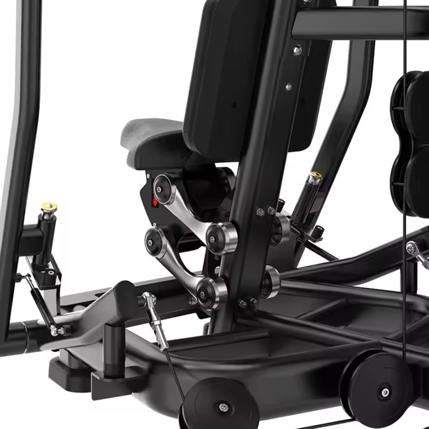 Надежность и безопасность движений тренажера обеспечена стальными втулками, двойными промышленными шариковыми подшипниками и торцевыми шайбами из алюминиевого сплава на всех подвижных узлах. Эргономичное контурное сиденье и спинка с подголовником снижают нагрузку на позвоночник и позволяют занять комфортную позицию на тренажере. Подушки изготовлены из прочной премиальной ПУ кожи профессионального класса ("автомобильная линейка") с наполнителем из цельного ППУ и прошиты двойной усиленной нитью.