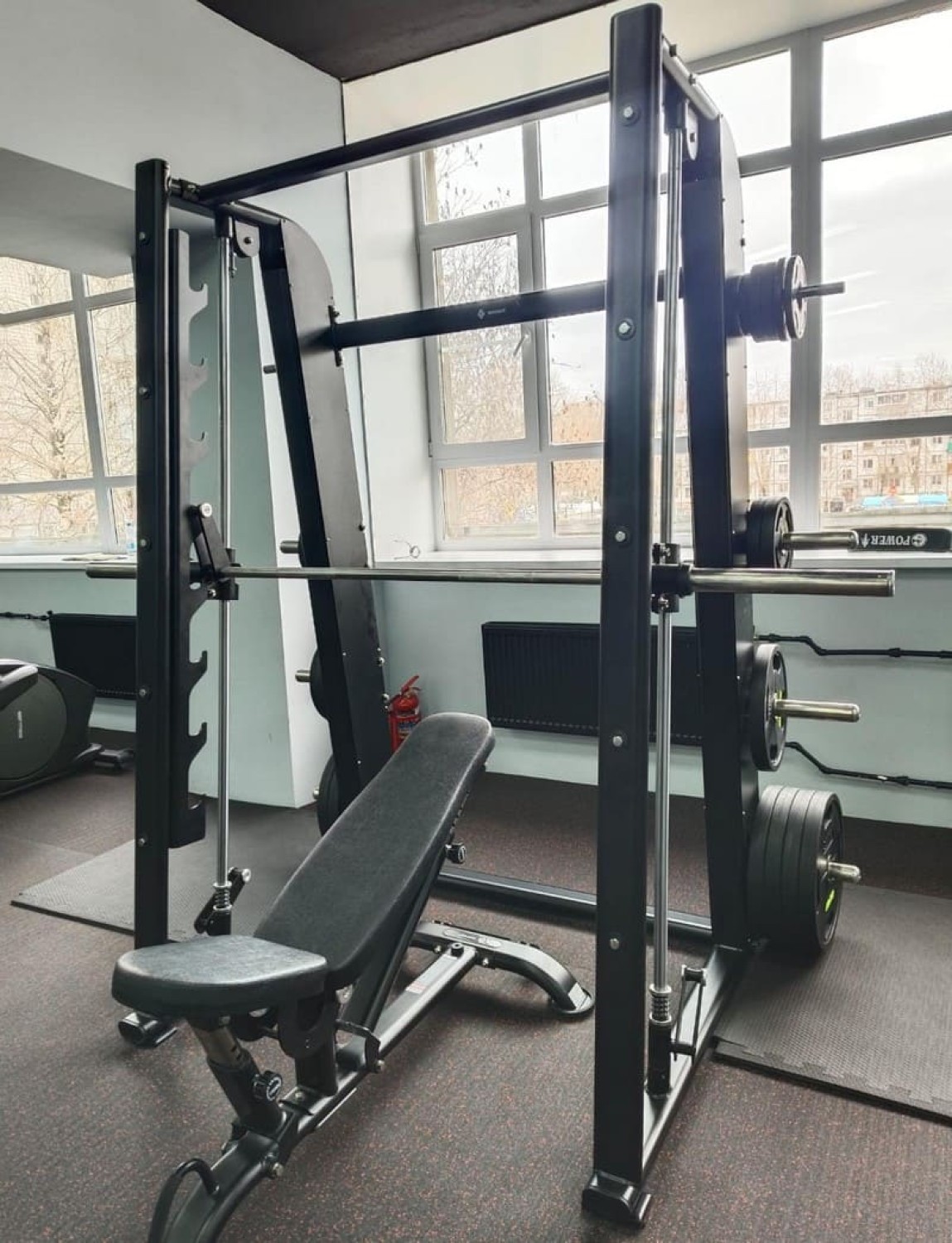 - Биомеханически правильный наклон в 7 градусов направляющих тренажера для правильного выполнения упражнений.