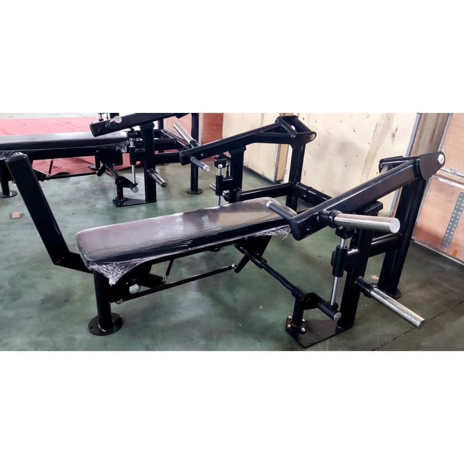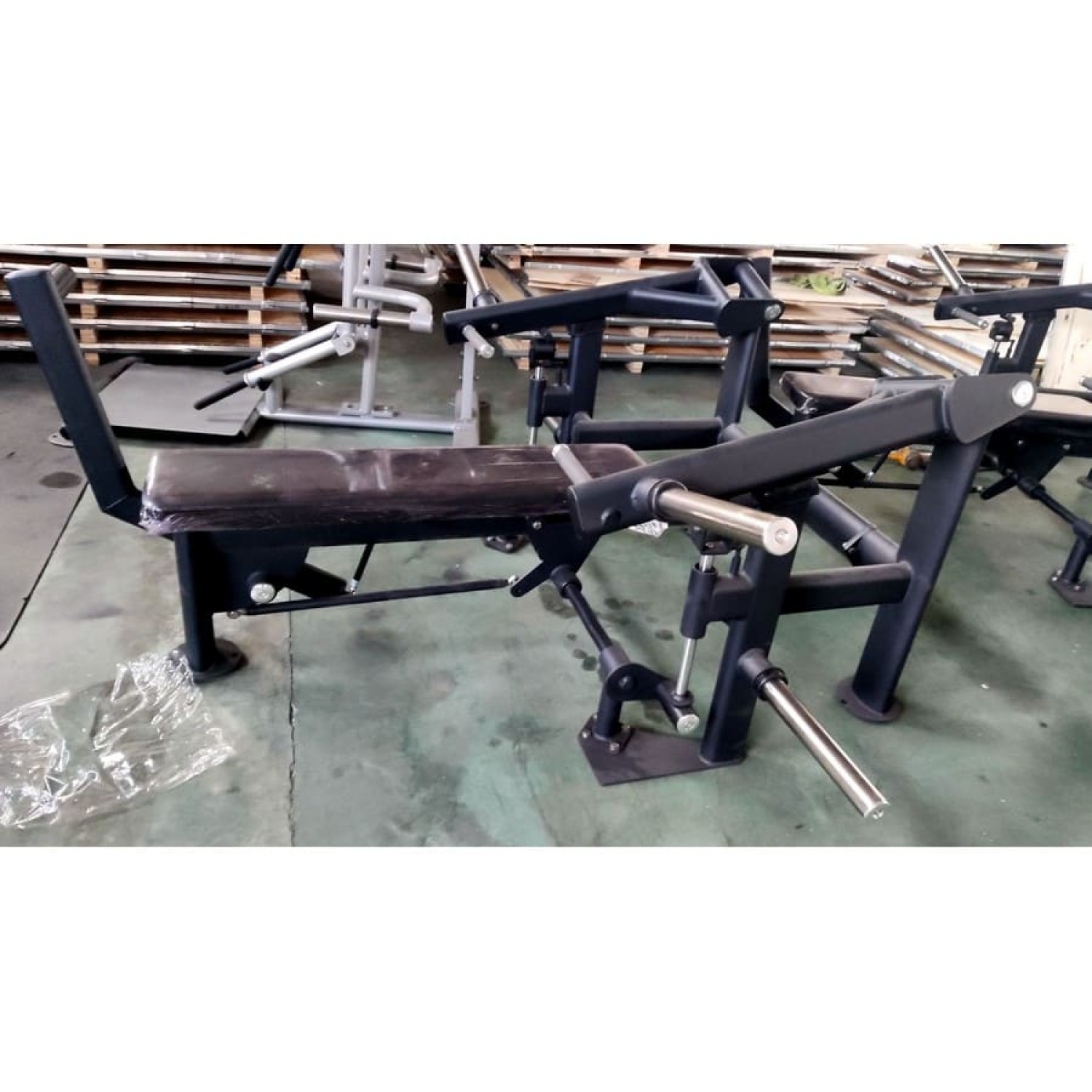 Жим от груди горизонтальный Gymmaster SS-22 - профессиональный тренажер на свободных весах, имитирующий жим лежа со штангой. Подходит для интенсивного использования в тренажерных залах, фитнес-клубах и спортивных школах. Тренажер обеспечивает абсолютную безопасность упражнений, благодаря страховочным упорам с прочными резиновыми амортизаторами и наличию механизма "легкого старта".