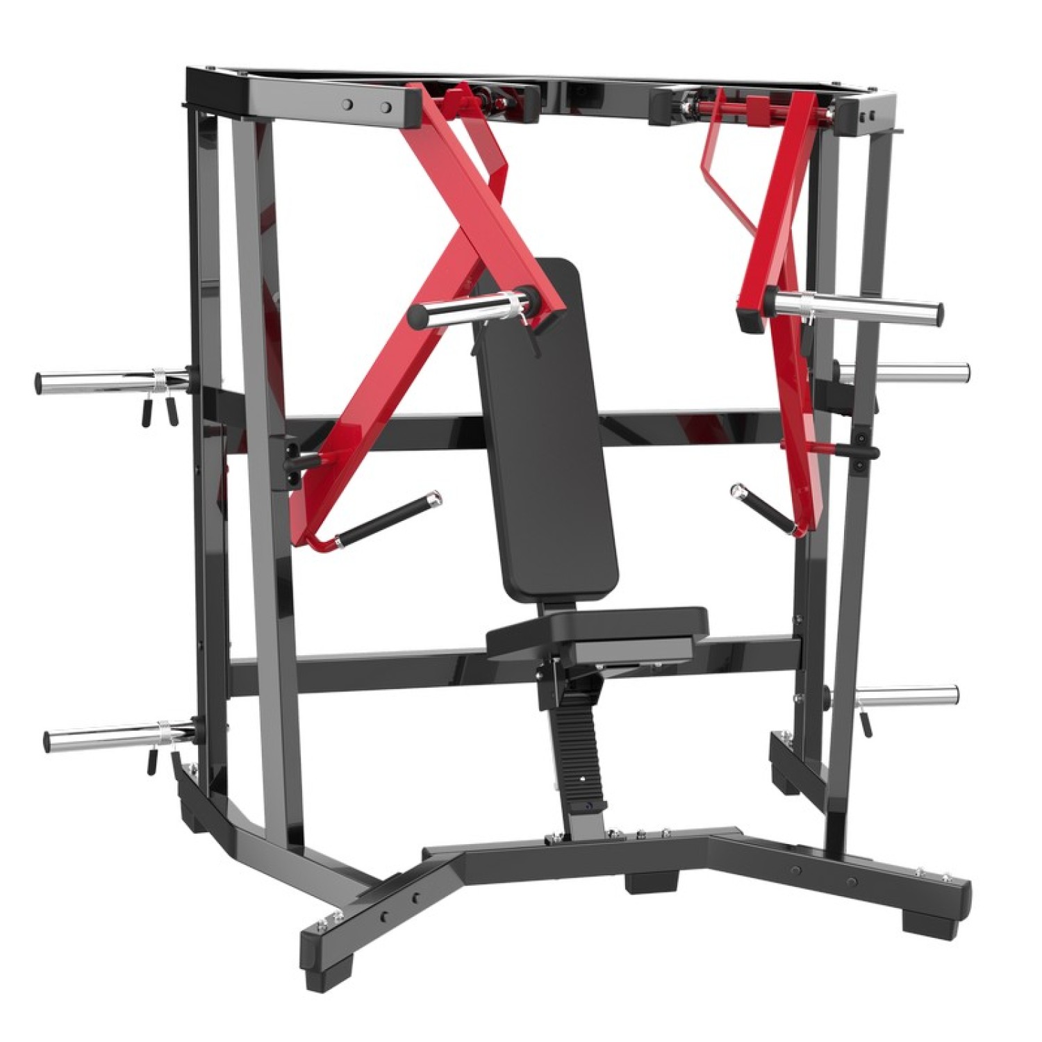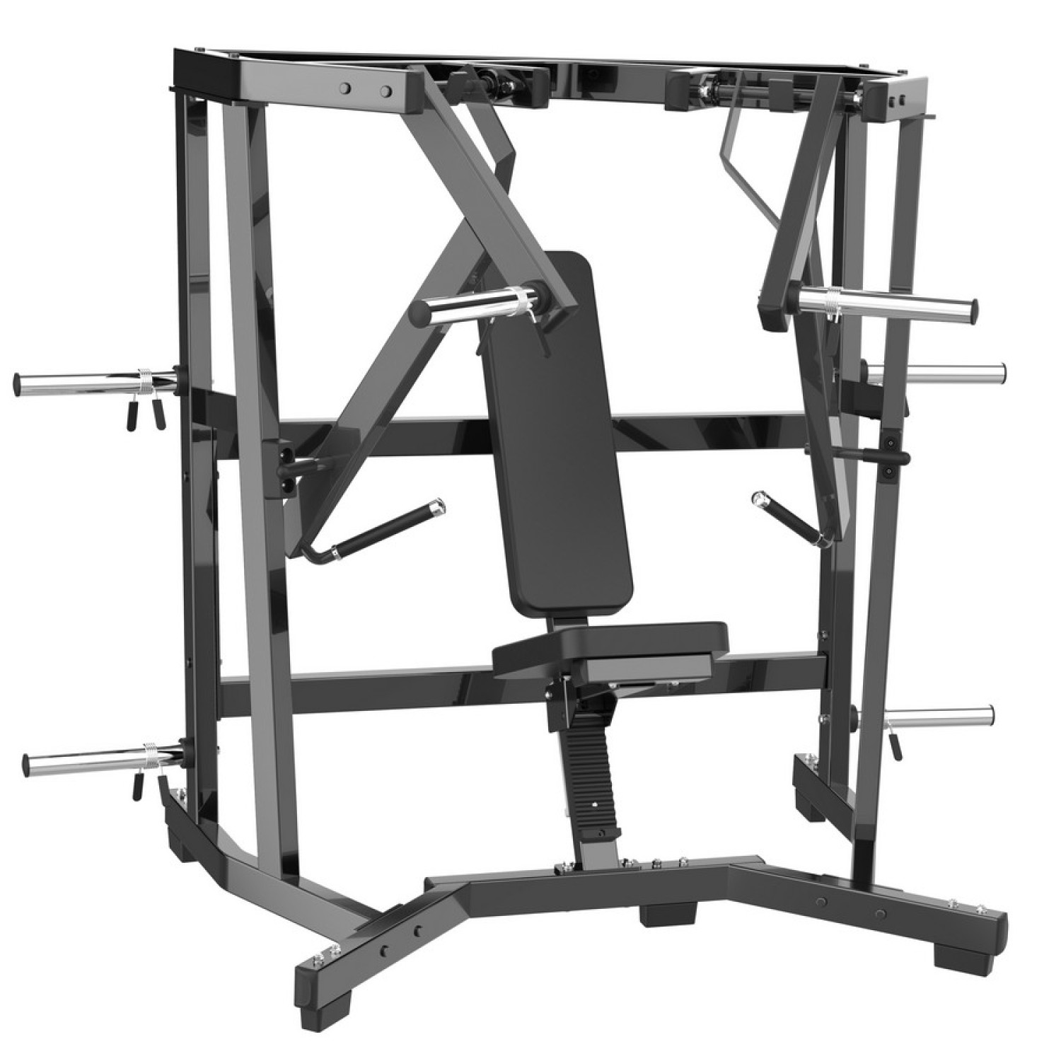 Жим от груди широким хватом Gymmaster AMV32 профессиональный тренажер нагружаемый олимпийскими дисками для выполнения упражнений на низ груди. Обладает большим ресурсом и подходит для интенсивного использования в фитнес-клубах. Целевые мышцы - нижняя часть груди, а также передние дельтовидные мышцы и трицепсы.