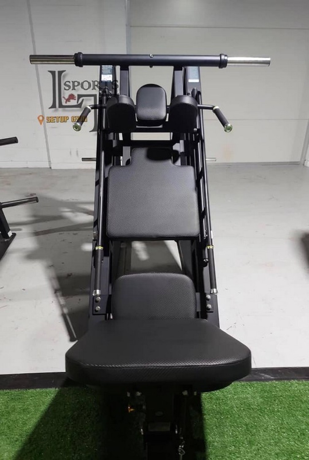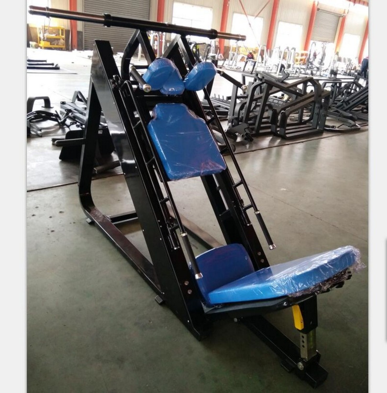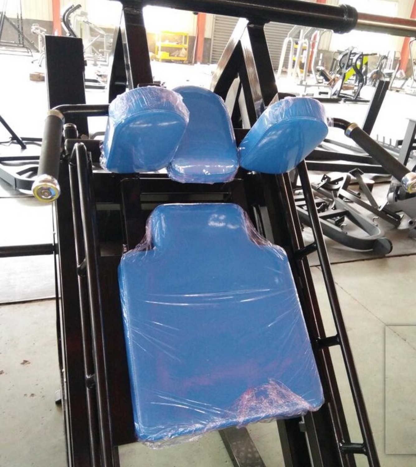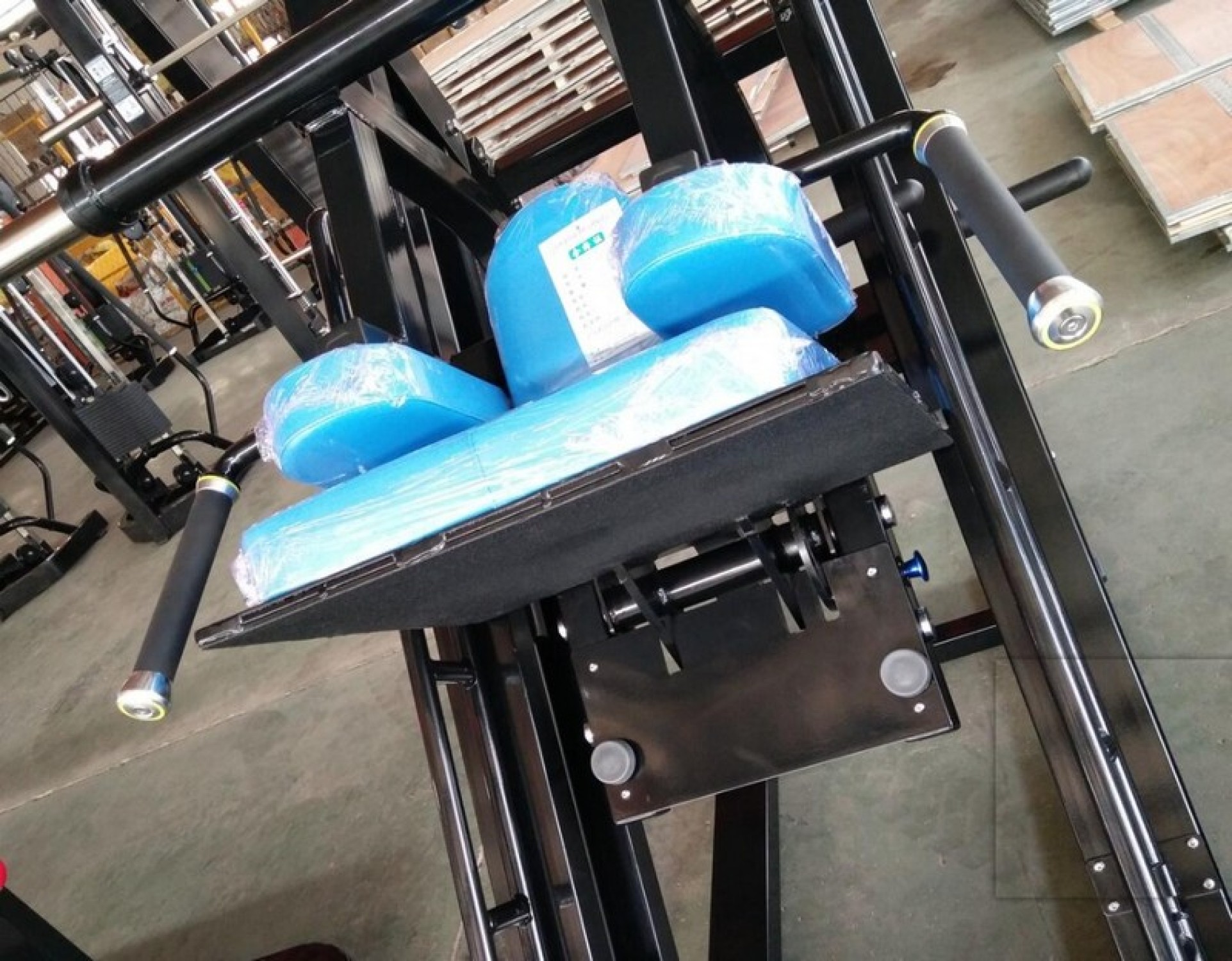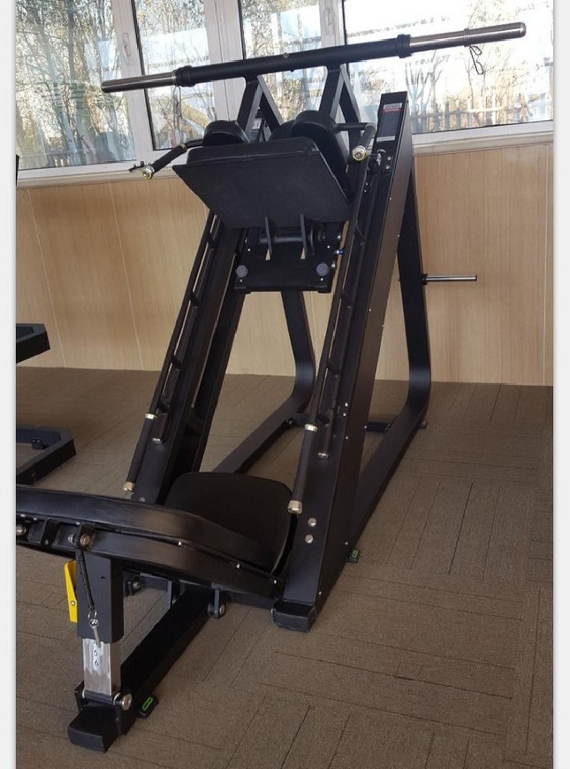 - Удобные большие ручки для поддержки во время выполнения гакк приседа, покрытые полиуретаном и обжатые стальными кольцами и колпачками;