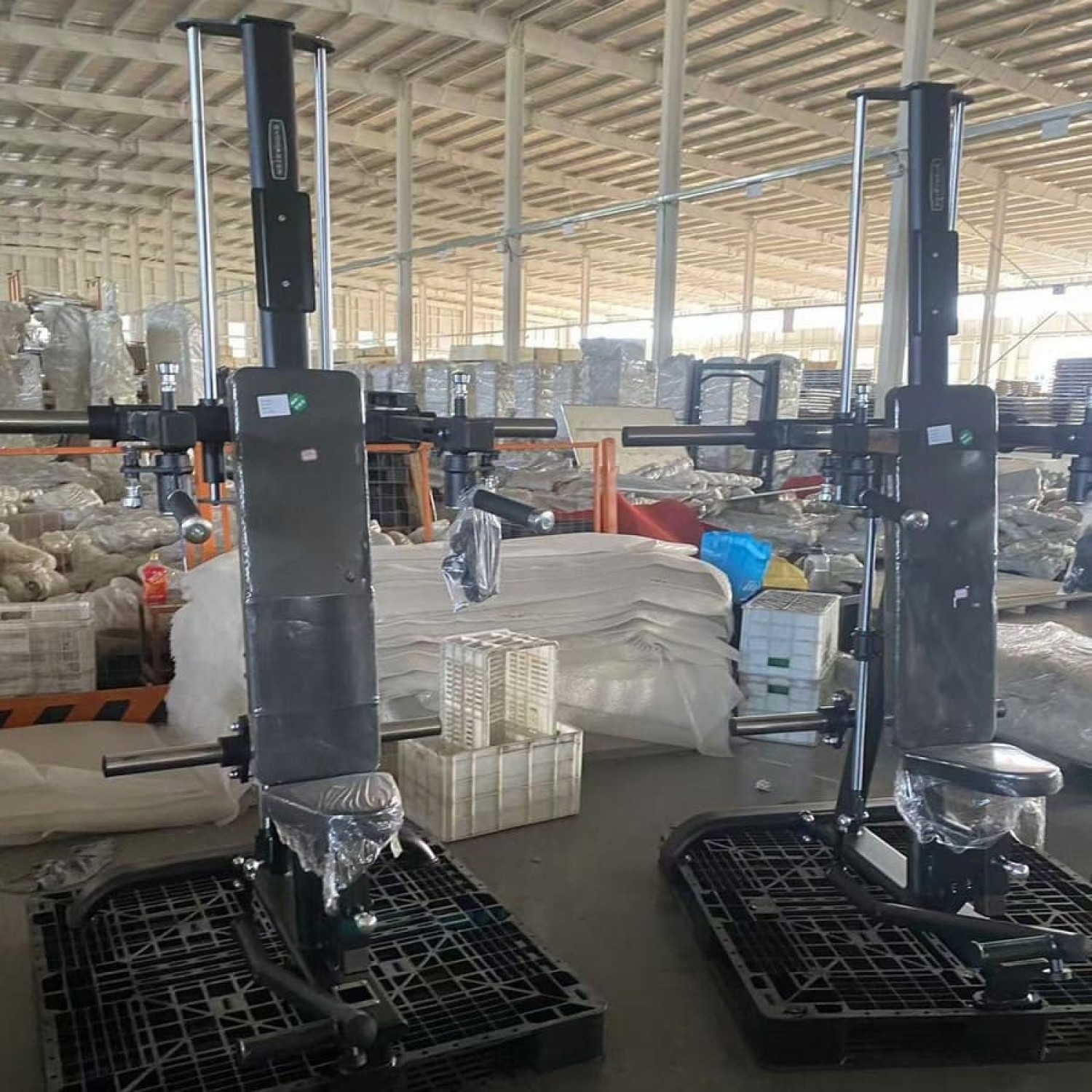 Втулки для нагружения и хранения: 2 шт. для нагружения - максимальная нагрузка 2х150 кг, 2 шт. для хранения - максимальная нагрузка 100 кг; имеют небольшой наклон вверх для защиты от сваливания, резиновые кольца для защиты рамы, и торцевые полусферические заглушки для легкого надевания дисков