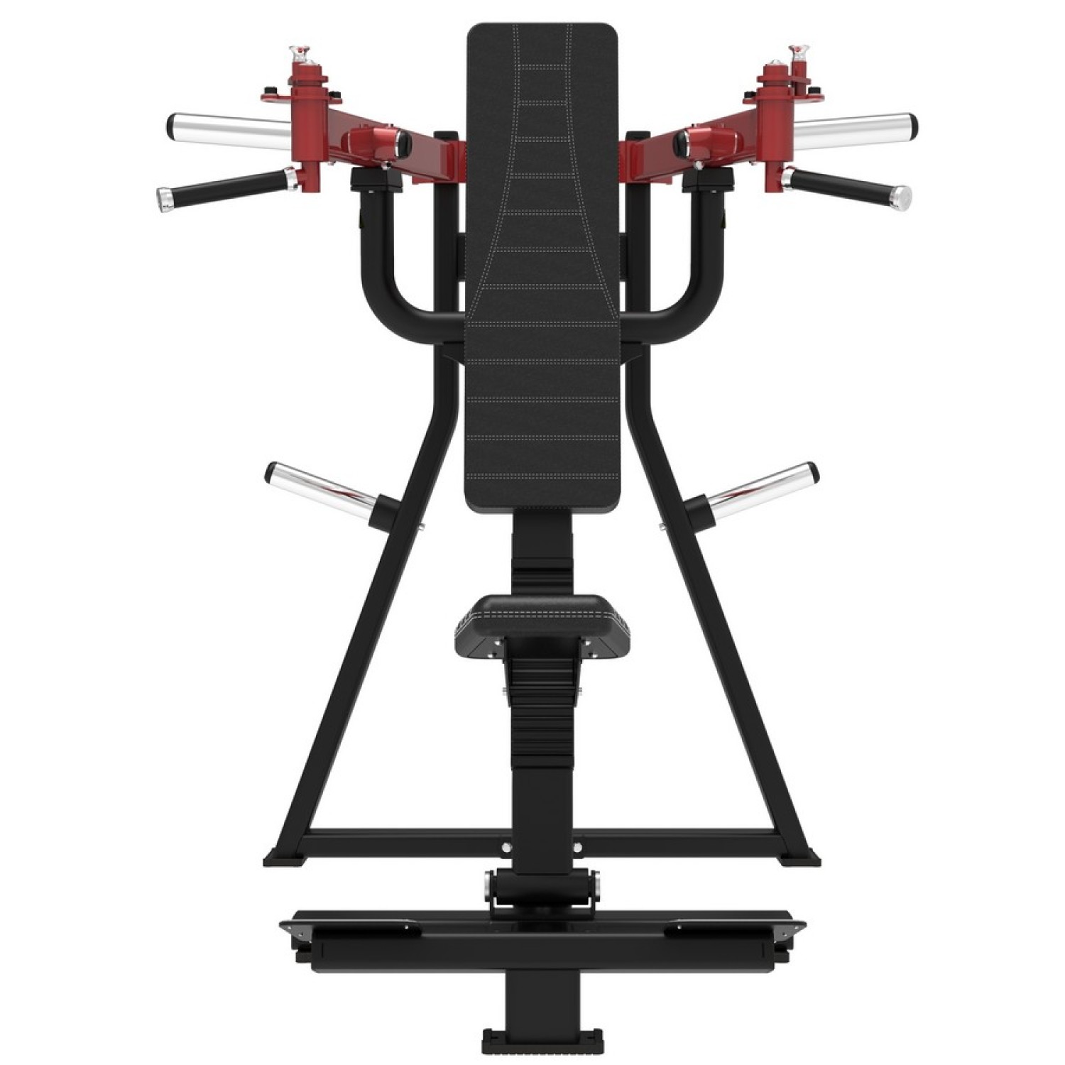 Эргономичное контурное сиденье и спинка снижают нагрузку на позвоночник и позволяют занять комфортную позицию на тренажере. Подушки изготовлены из прочной ПУ кожи профессионального класса с наполнителем из цельного ППУ и прошиты двойной усиленной нитью. На задней части рамы расположены 2 втулки для хранения дисков. Втулки для хранения на задней части рамы являются удобным решением, позволяющим нагружать тренажер не перетаскивая диски от стойки для хранения.