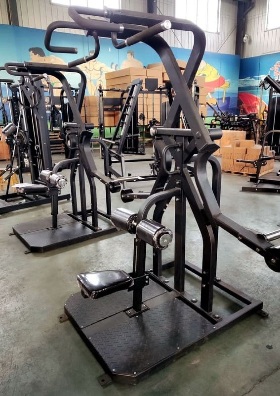 - Массивная рамная конструкция с отверстиями для крепления к полу;