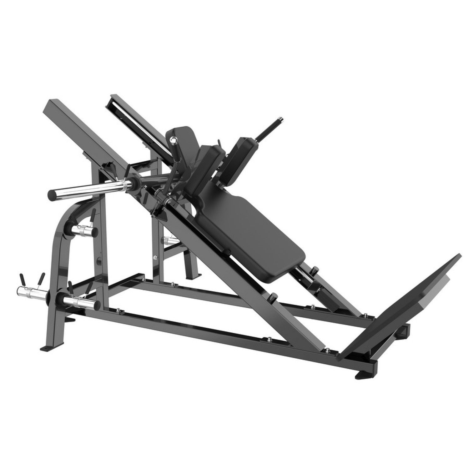 Гакк-присед Insight Fitness AMV45 профессиональный тренажер нагружаемый олимпийскими дисками для выполнения классических гакк-приседаний под углом 45 градусов. Станок обладает большим ресурсом и подходит для интенсивного использования в фитнес-клубах. Конструкция тренажера выполнена из прочной 2,5 мм стали и выдерживает общую нагрузку до 500 кг.