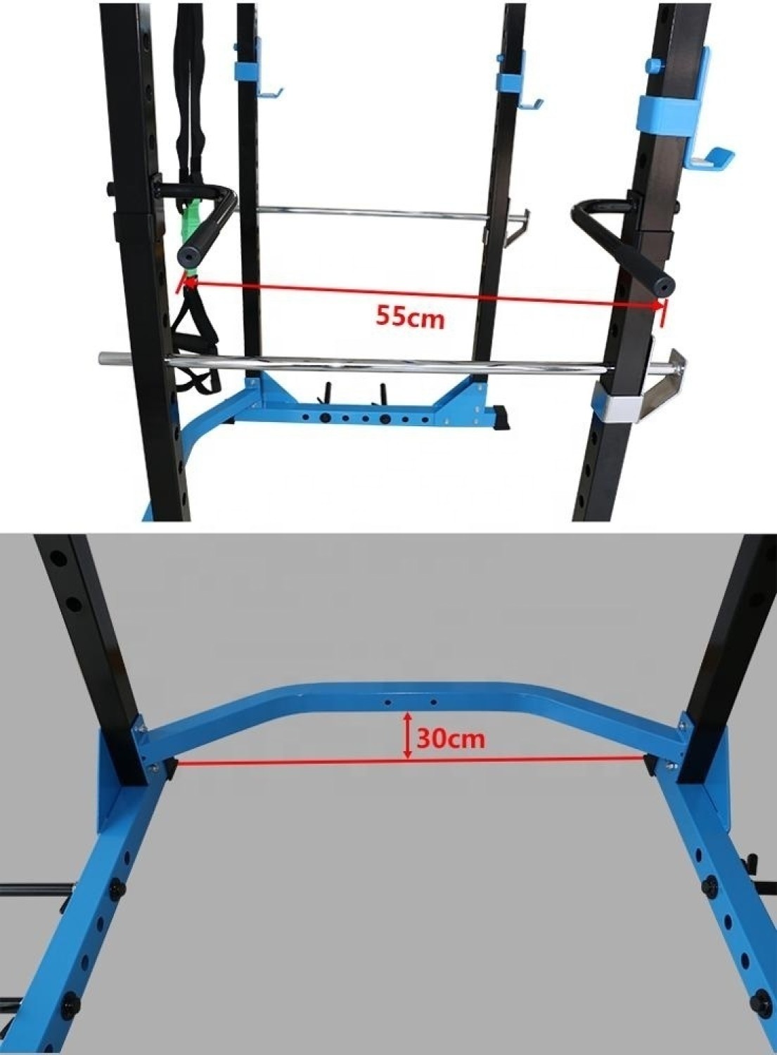 - Двумя парами j-крюков для штанги, которые легко устанавливаются на любую высоту. Держатели штанги сделаны из высокопрочной стали и защищены от повреждений пластиковыми накладками;
