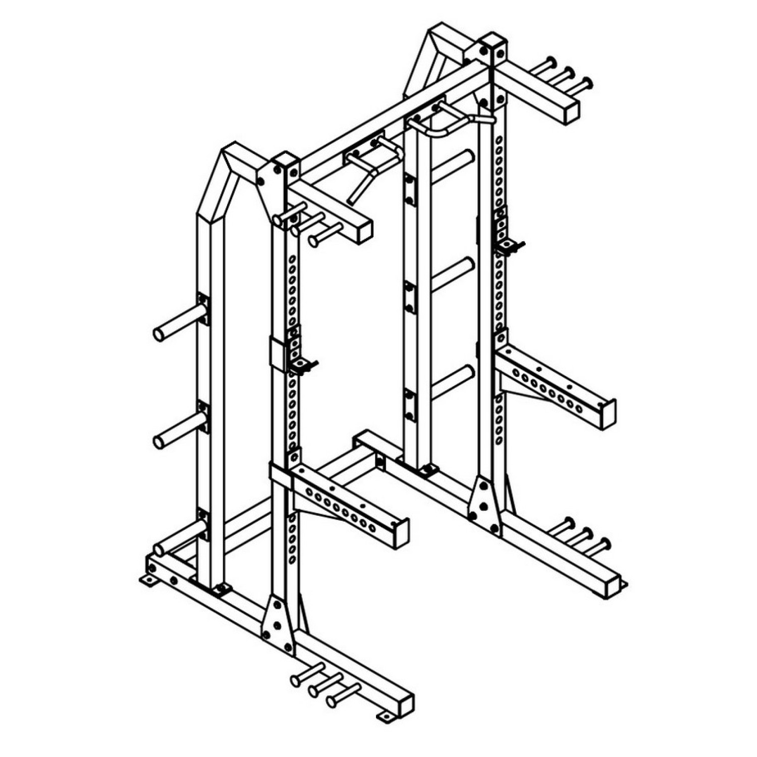 - В боковых стойках имеются отверстия на разных уровнях для быстрого изменения вертикальной позиции плинтов и держателей штанги (более 24 позиций) под разные упражнения - от жимов и глубоких приседов до упражнений в положении стоя;