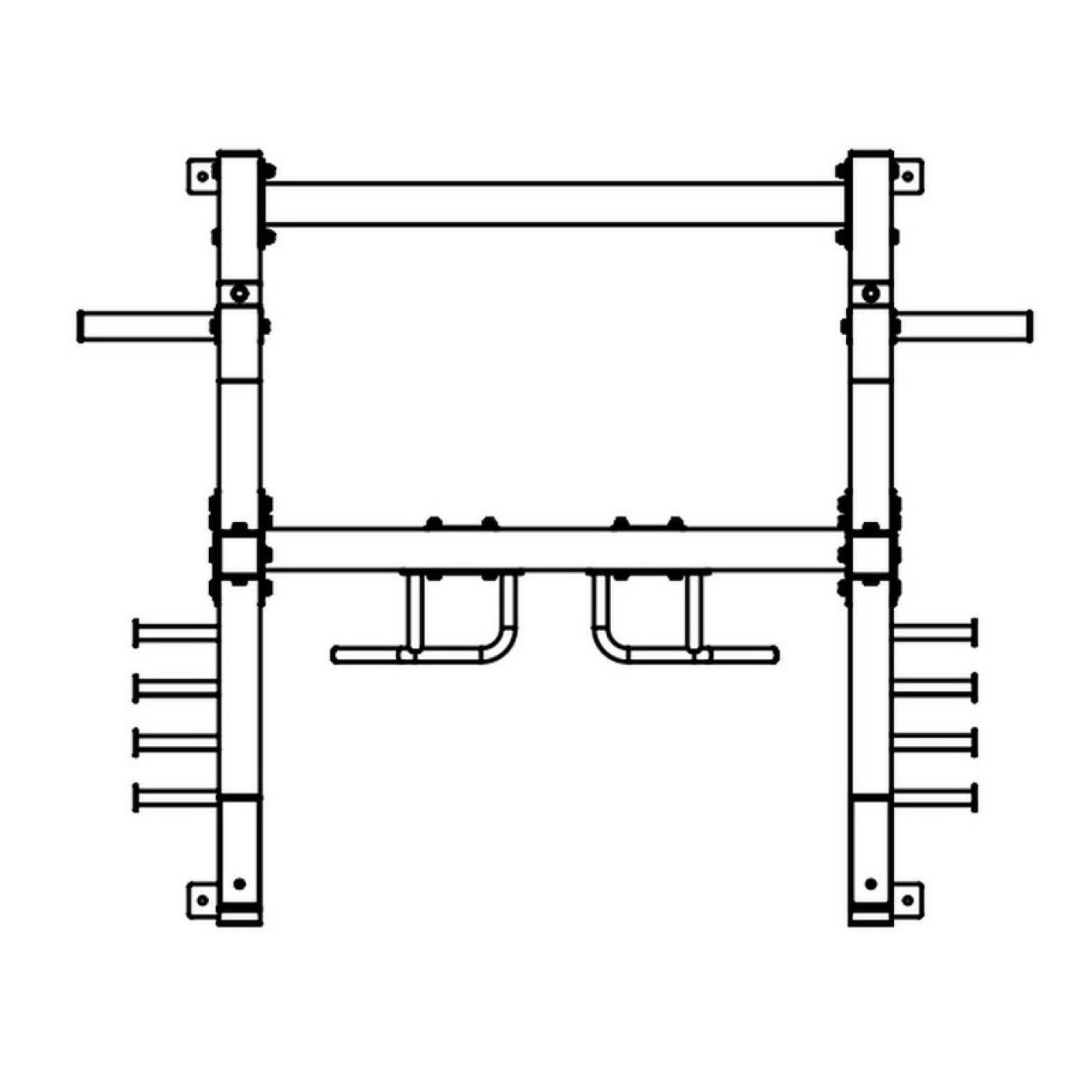 - Верхние и нижние кронштейны для крепления функциональных петель и фитнес резинок дают возможность проводить "взрывные" тренировки и функциональный тренинг с собственным весом и добавить дополнительное отягощение;