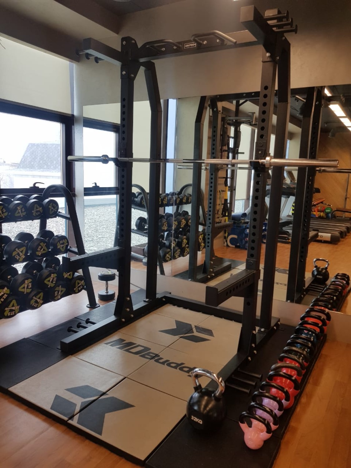 - Накладки из ABS-пластика защищают страховочные плинты, держатели штанги и гриф от повреждений;