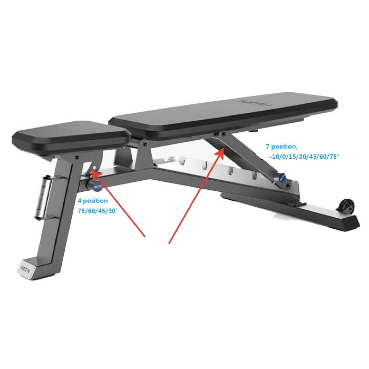 Профессиональная регулируемая скамья для силовых тренировок Vertex GETN GN4002A используется при работе со свободным весом. Применяется как при тренировках с гантелями, так и при выполнении жимов штанги, начиная от работы со стойками, заканчивая силовой рамой или машиной Смита.