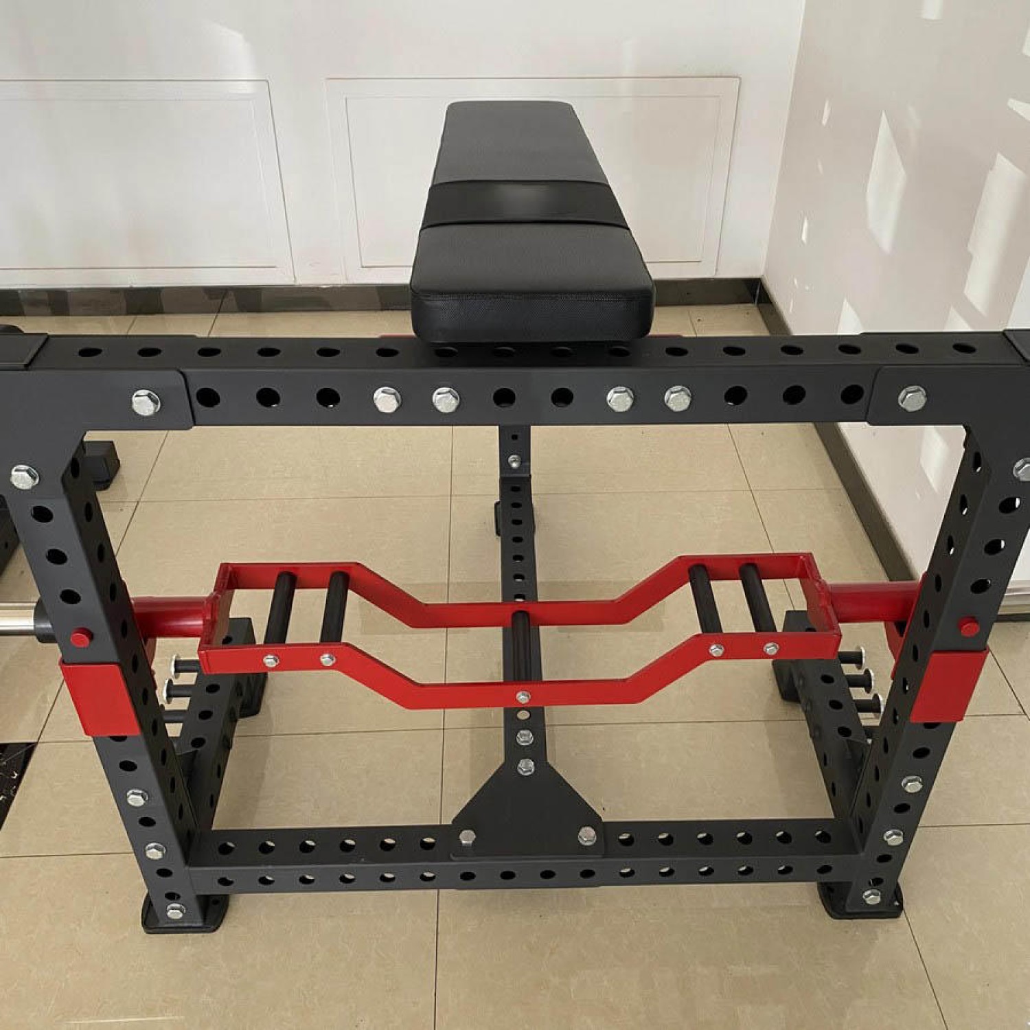 На задней части расположены 2 держателя для хранения дисков. Для проведения взрывных тренировок на нижних опорах рамы предусмотрены хромированные держатели резинок - по четыре с каждой стороны. Втулки для хранения и рукава на грифе снабжены защитными резиновыми кольцами и хромированы. Рама выполнена из 2,5 мм стали с перфорацией, ножки на овальных опорах, обрезиненны - это обеспечивает стабильность и защиту от опрокидованийю