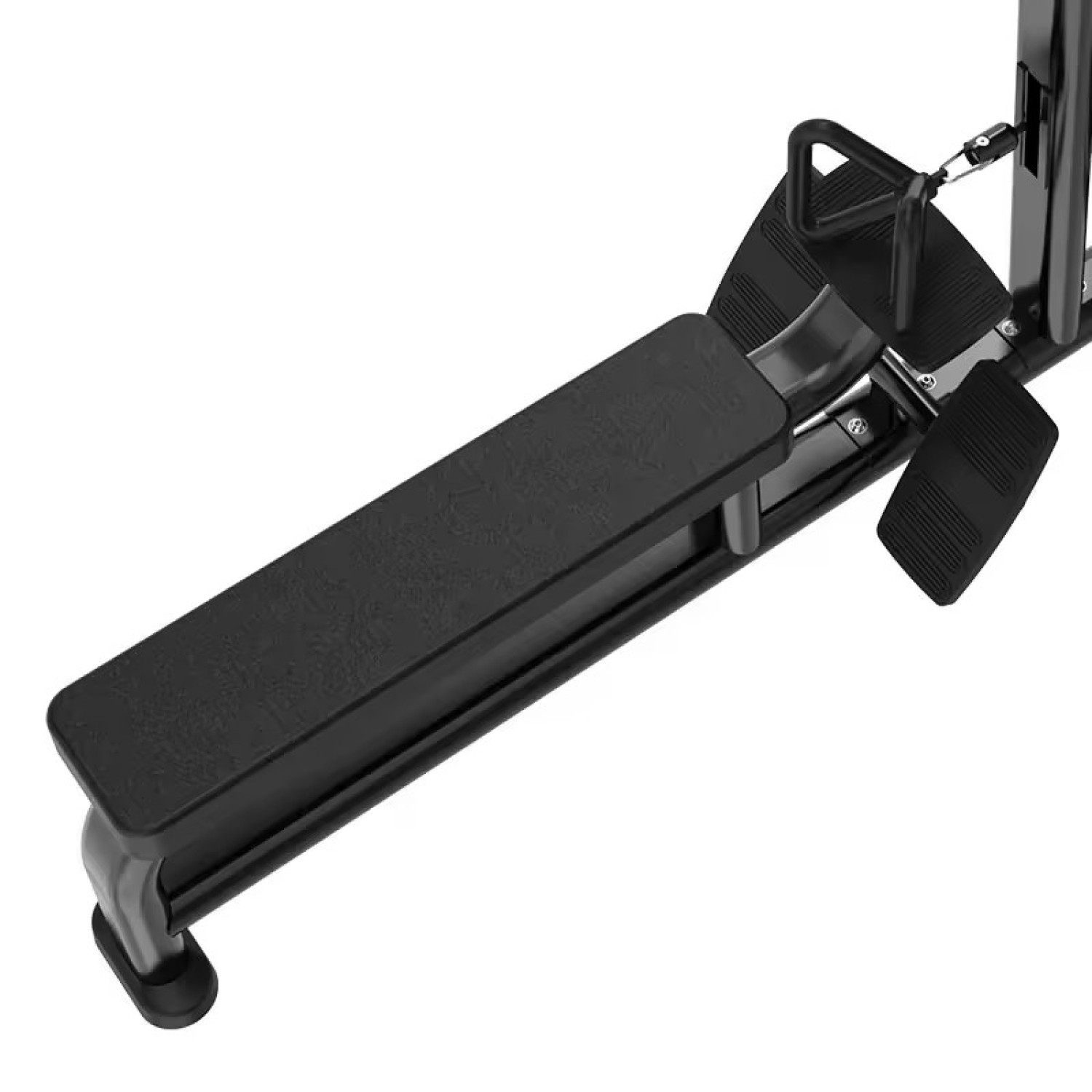 Подножки: 2 шт., обеспечивают фиксацию нижней части тела и надежный упор даже при работе с большими весами; снабжены сменными текстурными резиновыми накладками, которые предотвращают соскальзывание стоп