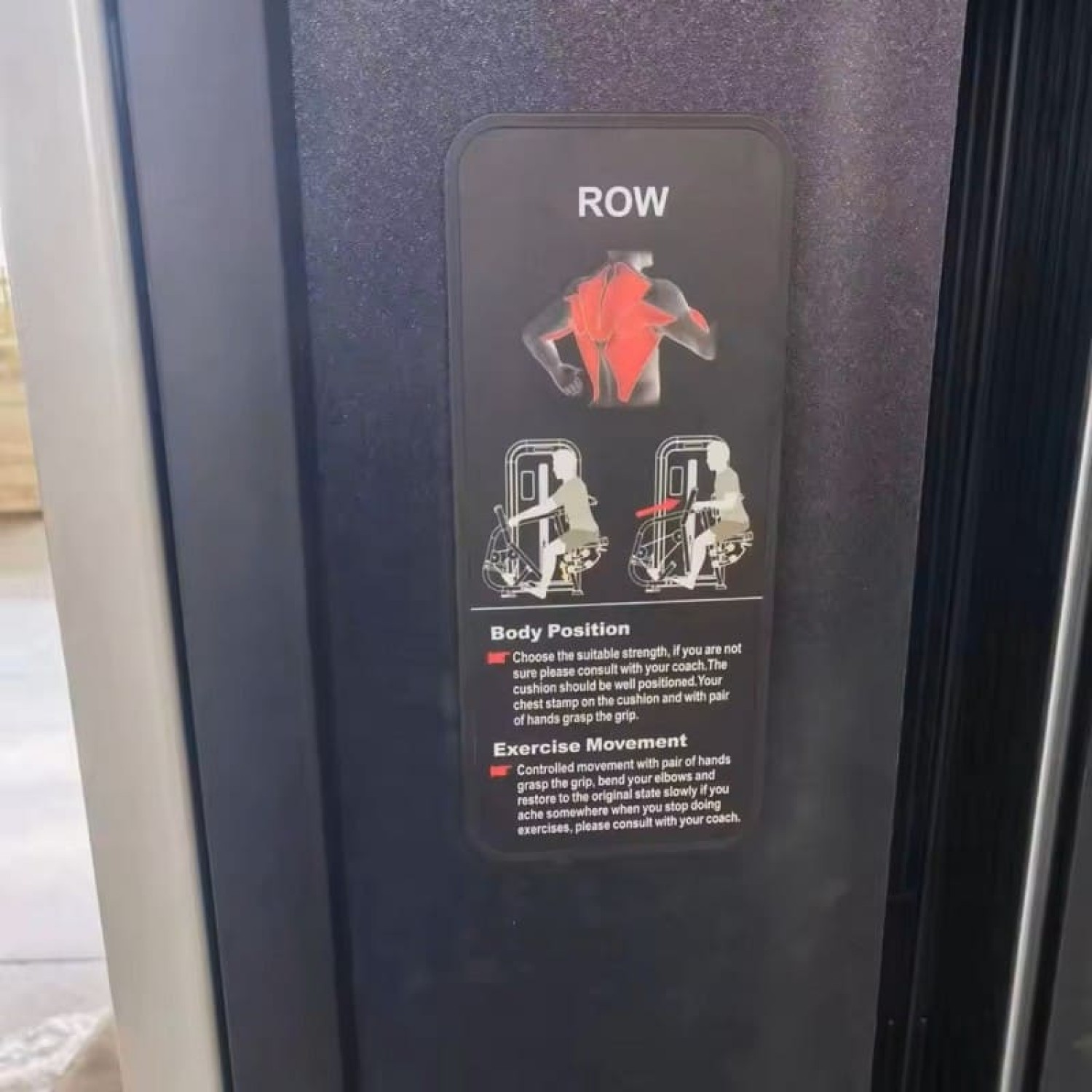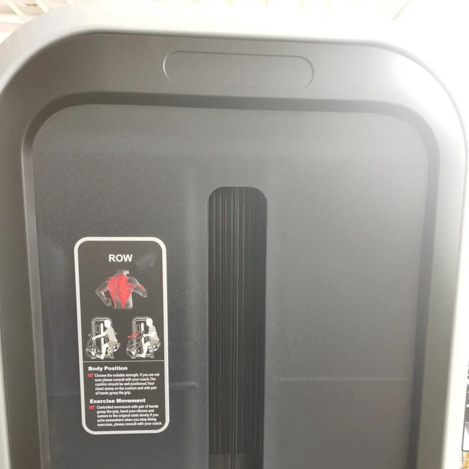 Инструкция со схемой упражнений и целевыми мышцами: ПВХ-наклейка на кожухе стека.