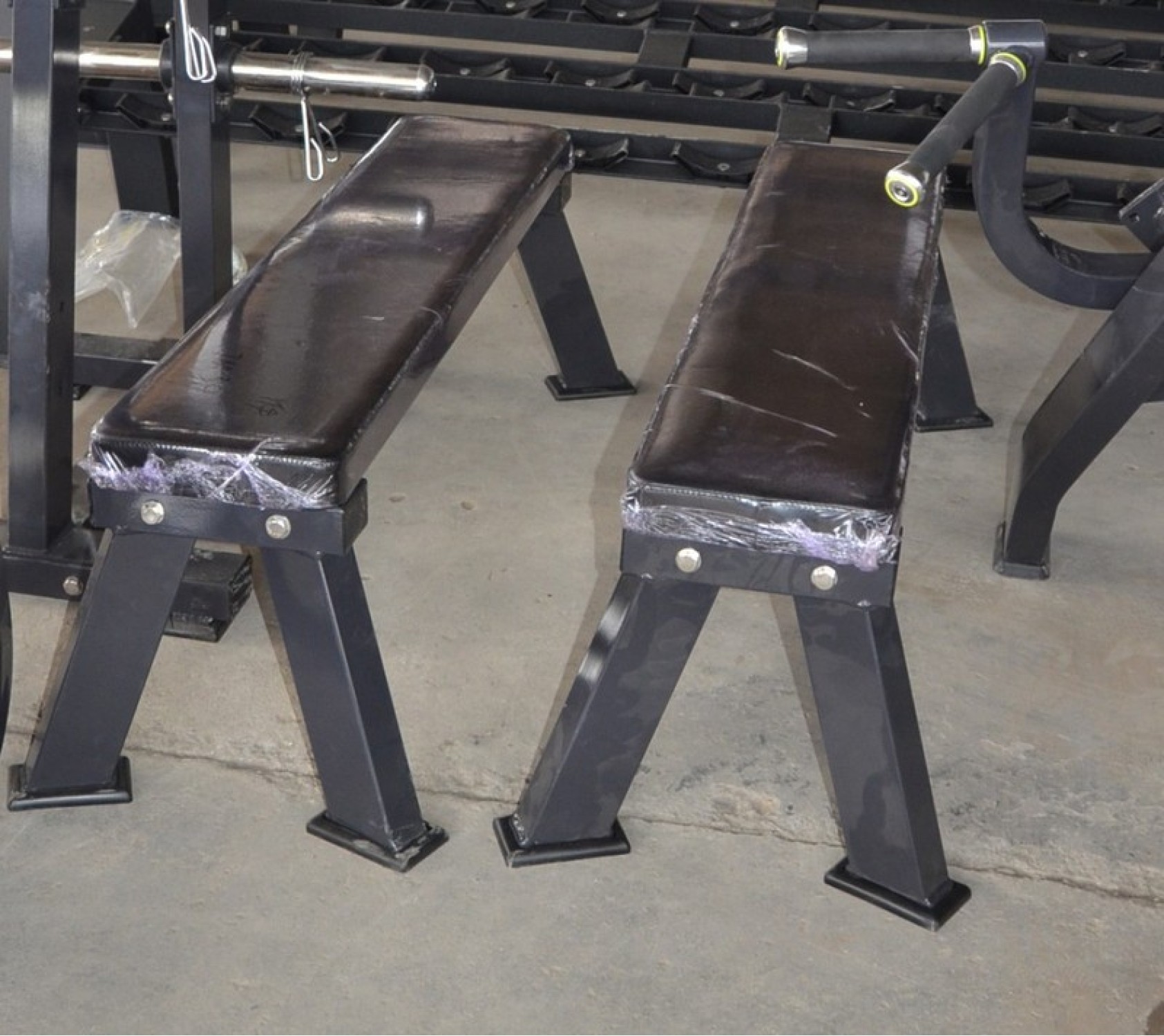 Профессиональная горизонтальная скамья предназначена для выполнения жима лежа с гантелями или штангой. Данное оборудование также обеспечивает эффективную нагрузку верхних и нижних мышц пресса за счет подтягивания ног к туловищу и возвращения в исходную позицию. Скамья позволяет провести разминку и разогреть мышцы перед началом более серьезной тренировки. Возможно ее совместное использование с машиной Смита, различными силовыми рамами и стойками. Дополненная другими профессиональными тренажерами горизонтальная скамейка способствует целенаправленной проработке всех групп мышц.