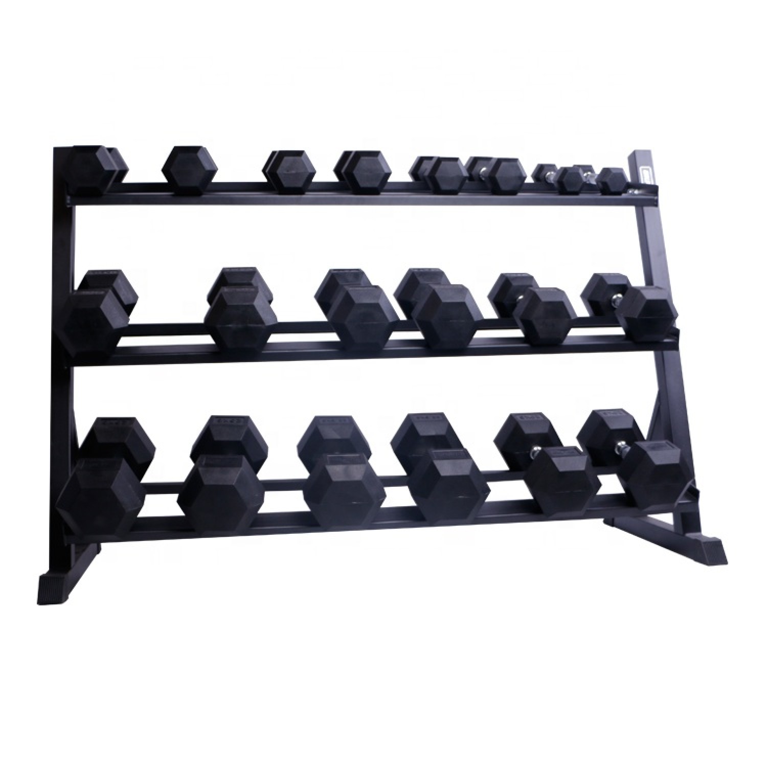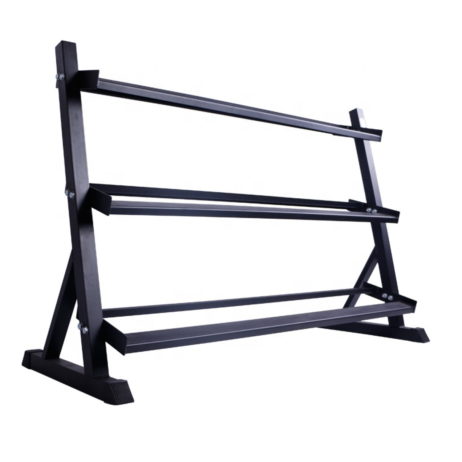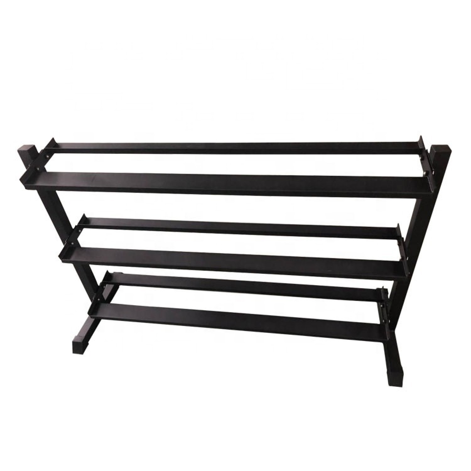 Горизонтальная трехъярусная стойка для хранения гантелей. Подходит для хранения гексагональных гантелей малых и больших весов (10-15 пар).