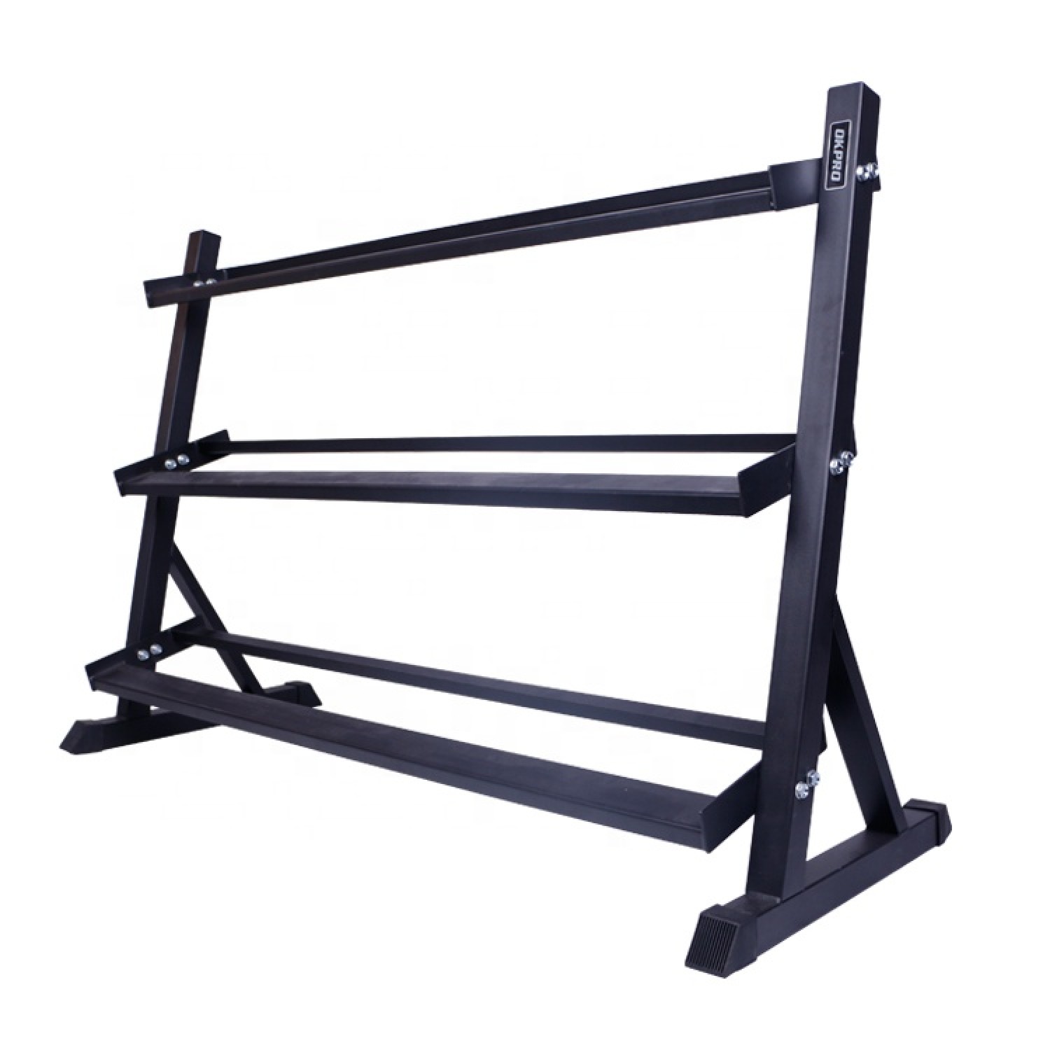 - Полки расположены под углом, что позволяет легко и безопасно брать гантели любого веса. Выполнены из 4 мм стали и покрыты двумя слоями заводской порошковой краски. Устойчивы к сколам и царапинам, не подвержены коррозии.