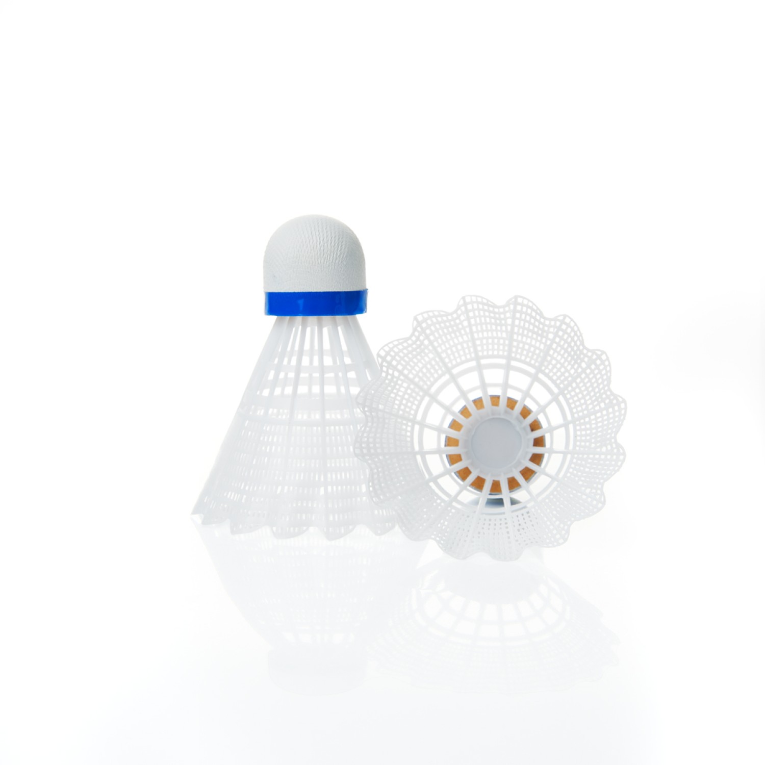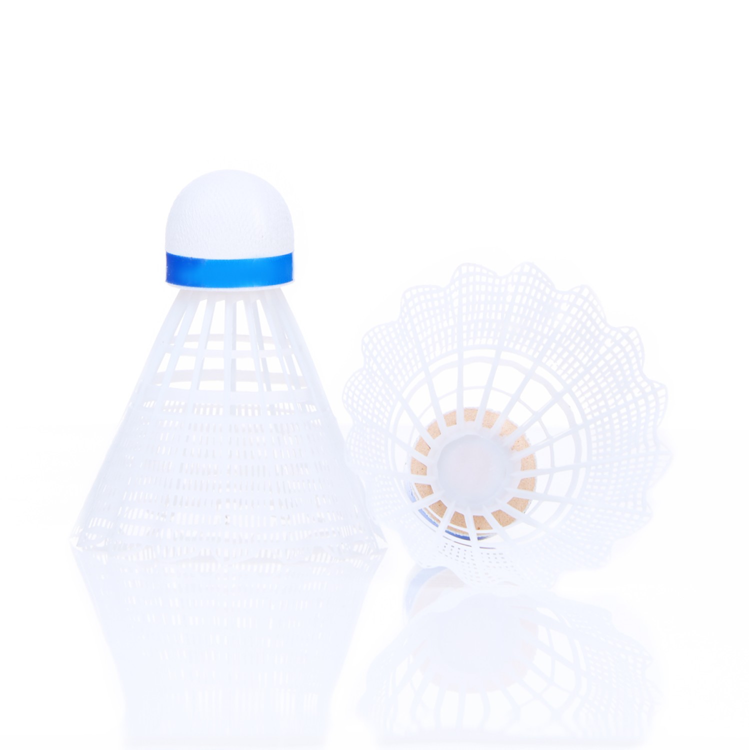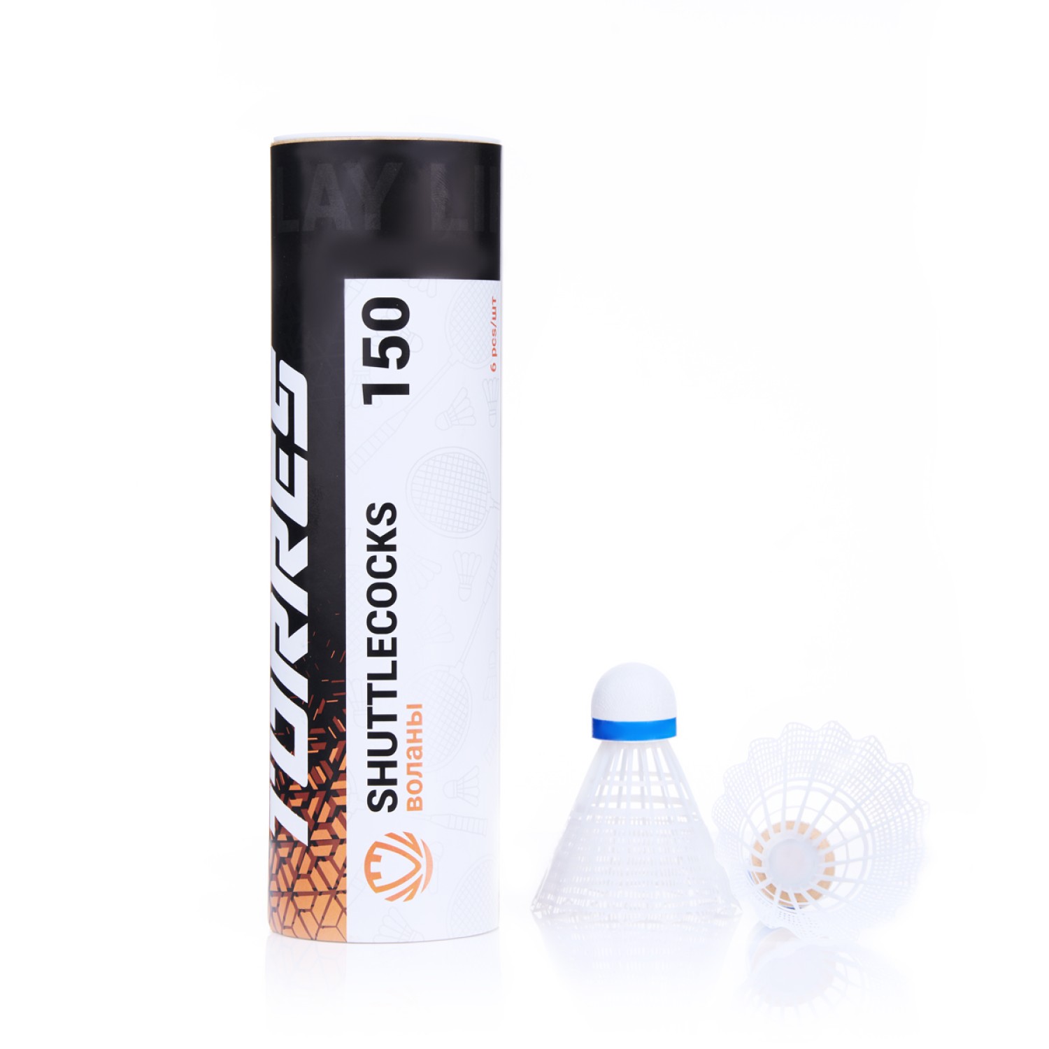 Волан TORRES 150, любительского уровня для игры в зале и на улице. Пластиковая юбка белого цвета. Пенопластовая "головка" волана, с индикаторной лентой синего цвета, что соответствует средней скорости, для игры при температуре от 12 до 23 °С.
