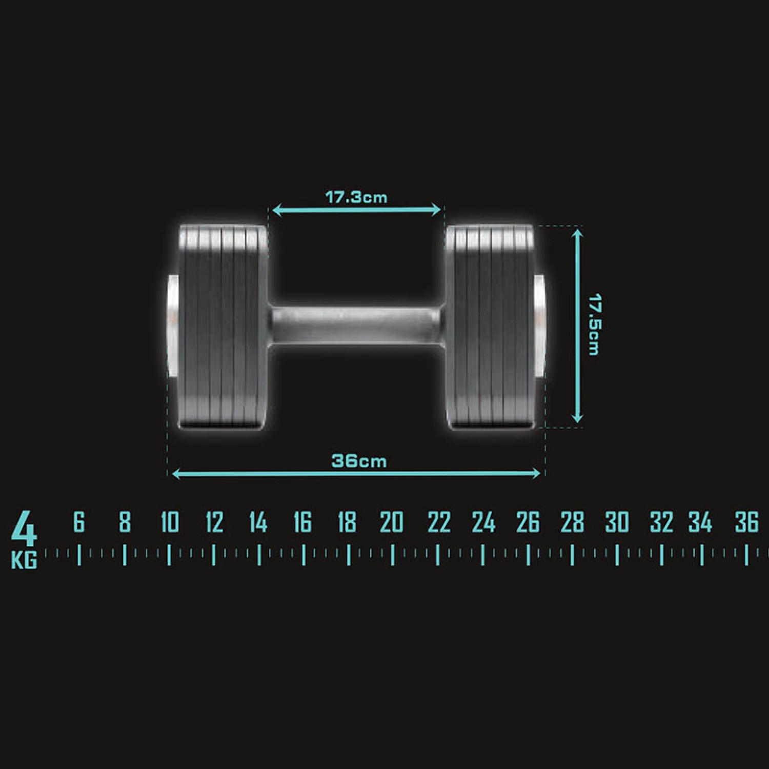 Веса регулировки: от 4 до 36 кг, шаг 2 кг.