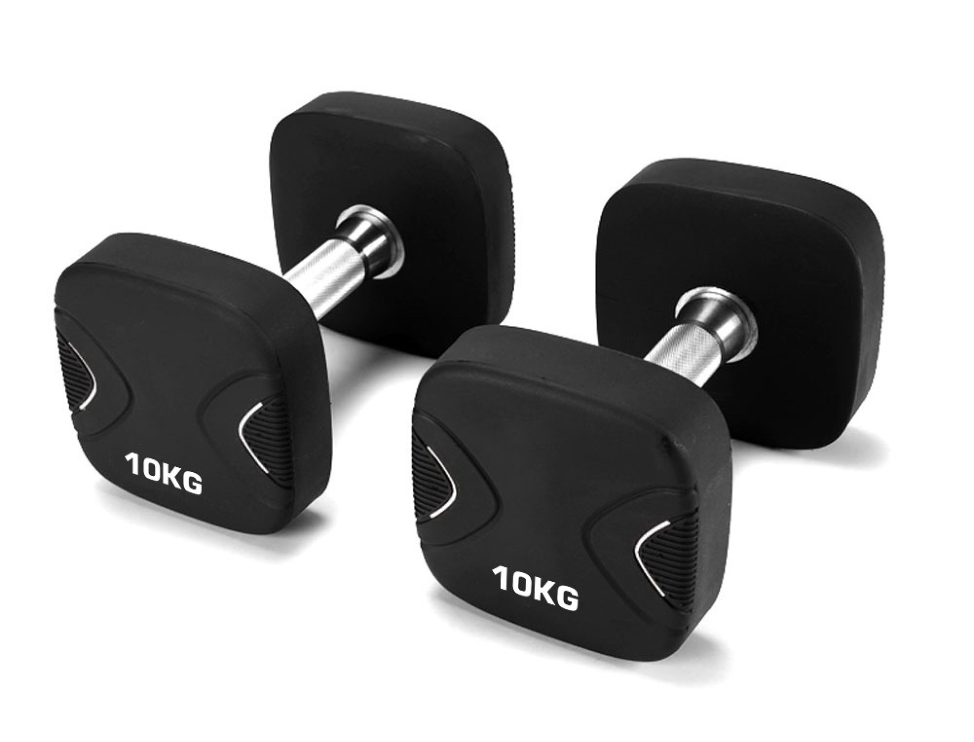 Гантели удобно ставить на стойку для хранения или на пол после тренировки, благодаря квадратной форме со сглаженными углами. Снаряд не подвержен коррозии, благодаря хромированному покрытию ручки и термопластичному полиуретану, которым покрыты веса. TPU материал очень долговечен, защищает гантели от сколов и царапин и не повреждает напольное покрытие.