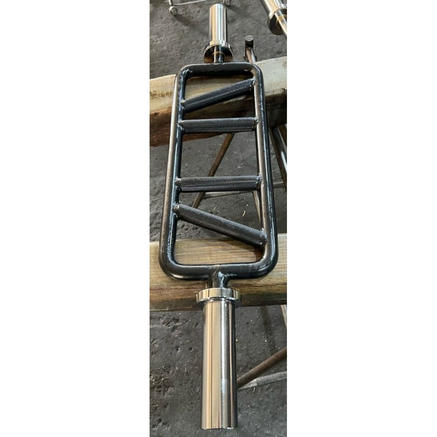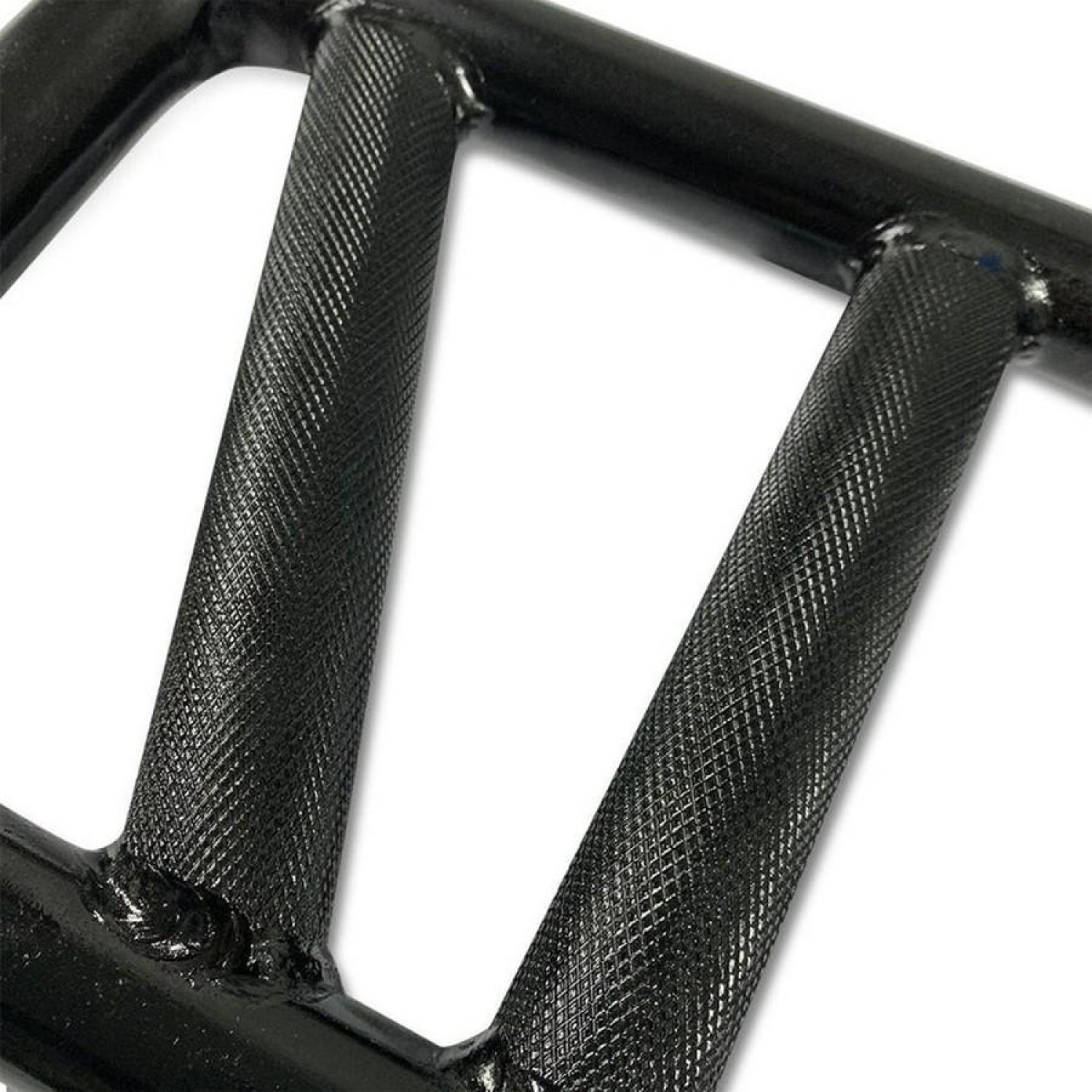 Стандартный прочный рамный гриф с параллельным хватом и хватом под углом (для уменьшения нагрузки на кисти рук) для профессиональных силовых тренировок с большой изоляцией трицепса. Гриф для штанги с таким расположением ручек может быть использован для различных тяжёлоатлетических упражнений, включая: молоток бицепса, французские расширения трицепсов и многие другие.