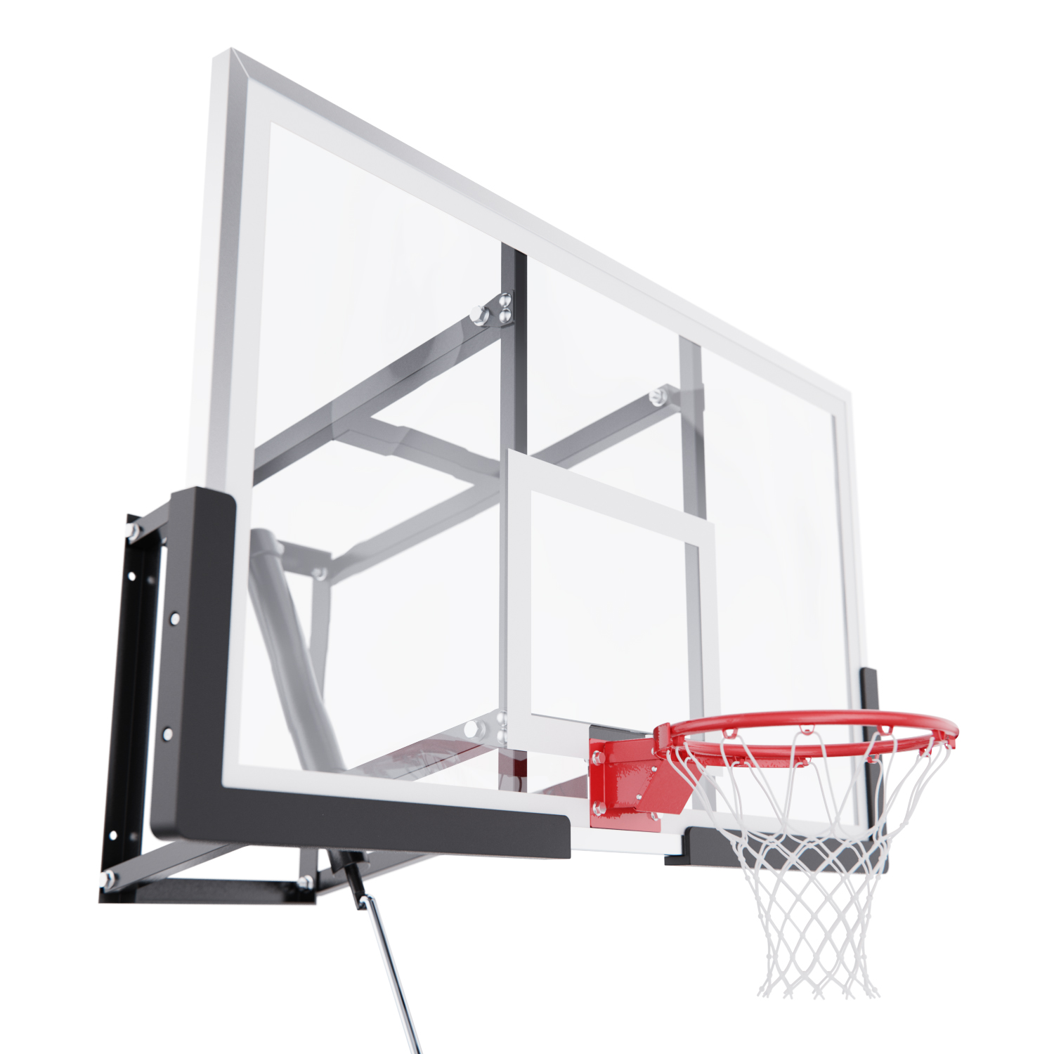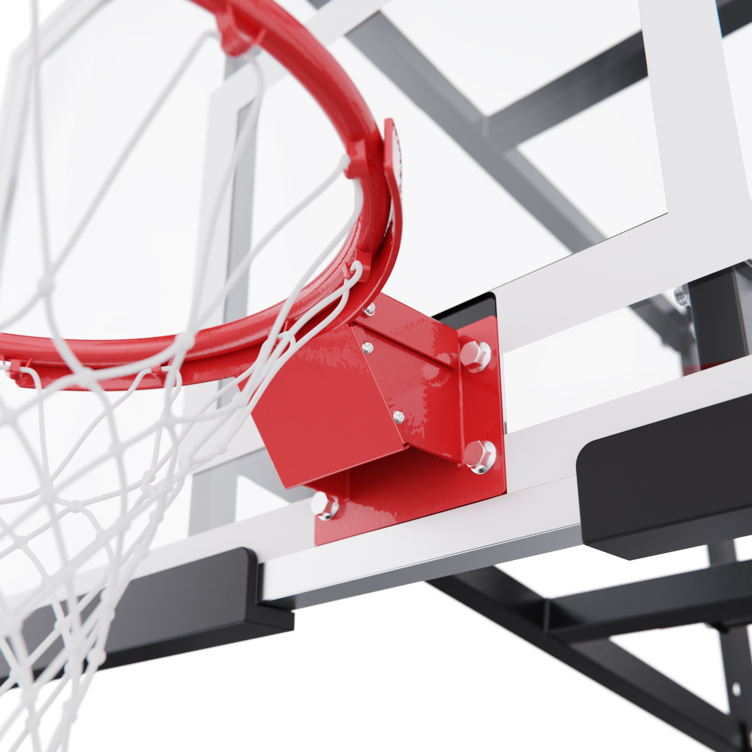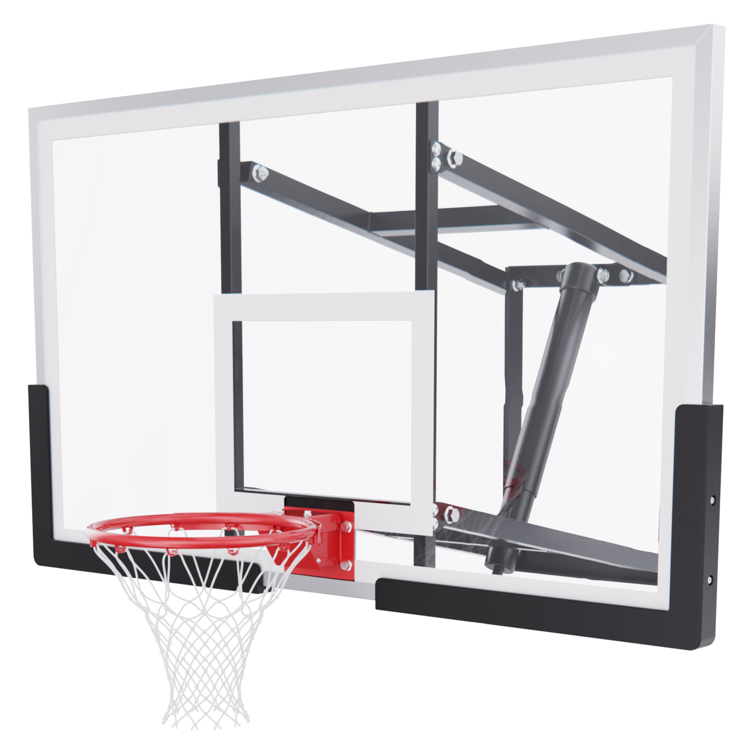 Щит изготовлен из прочного закалённого стекла толщиной 6 мм — материала, обеспечивающего отличный отскок мяча и устойчивость к ударам. Его размеры — 136 х 80 см, что делает его максимально приближенным к профессиональному оборудованию. Регулируемый вынос щита (51–55,5 см) повышает безопасность и удобство во время игры.