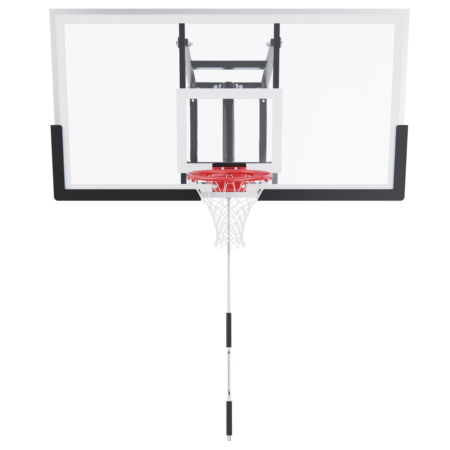 Щит изготовлен из прочного закалённого стекла толщиной 8 мм — материала, обеспечивающего отличный отскок мяча и устойчивость к ударам. Его размеры — 152 х 80 см, что делает его максимально приближенным к профессиональному оборудованию. Регулируемый вынос щита (51–55,5 см) повышает безопасность и удобство во время игры. Дополнительную безопасность обеспечивает защита Poly Pade, установленная по нижнему краю щита.