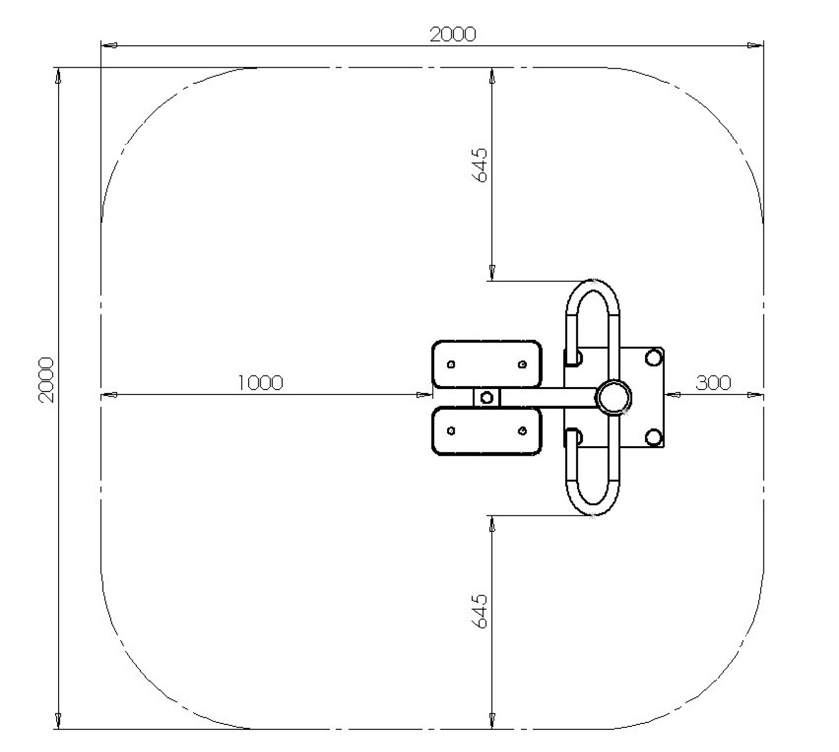 - Тренажер крепится на закладной элемент, который монтируется на глубину 500 мм и представляет собой платформу из листа с армирующей обвязкой. Размеры закладного элемента 300х300мм с межцентровым расстоянием шпилек 240 мм, высота шпильки 30 мм над уровнем закладного, диаметр шпильки 16 мм. Гайки утапливаются в антивандальное гнездо тренажера, оснащенное заглушкой от выкручивания;