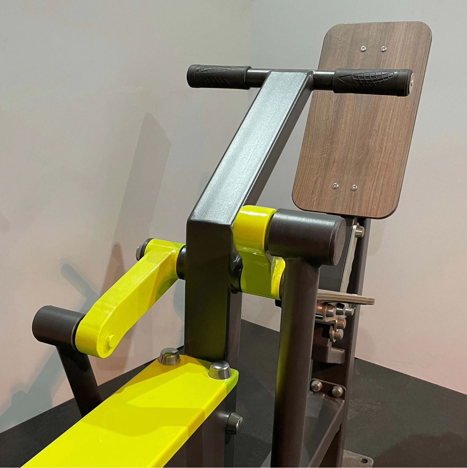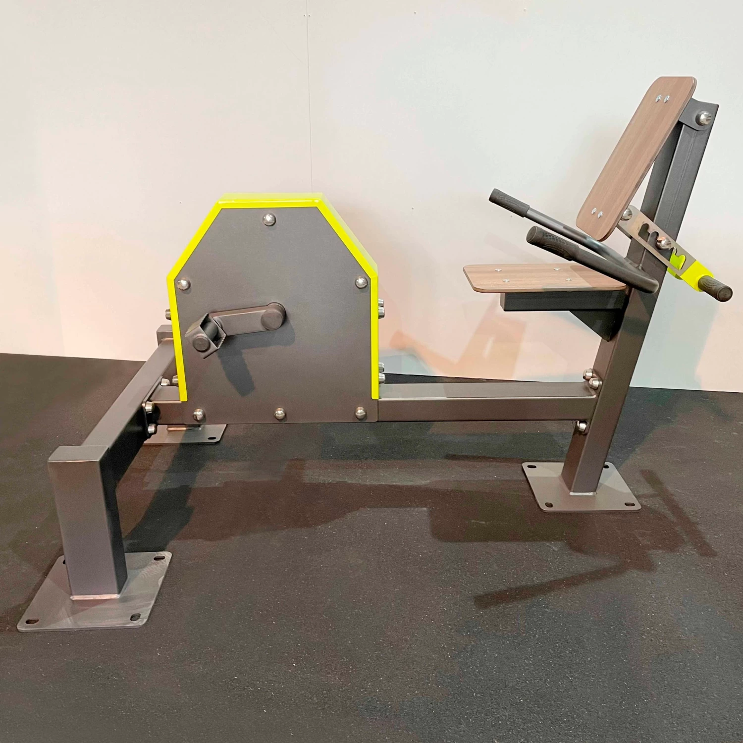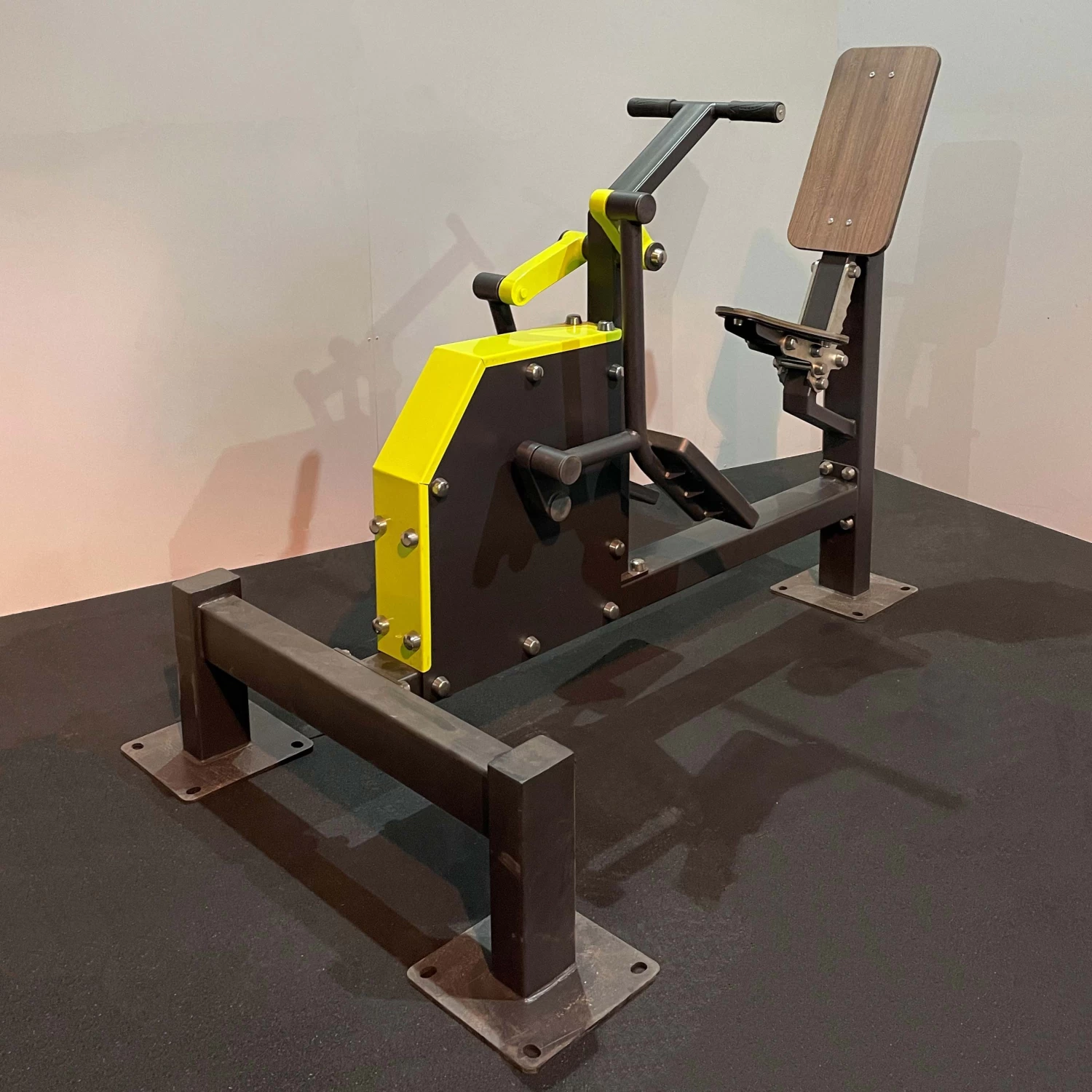 Фланцевое соединение для монтажа тренажера 300*300*8 имеет 4 овальных отверстия, для регулировки установки тренажера, под болтовое крепление М16. Цокольная опора крепления выполнена из листового металла 8, 6 мм, и гильзы из трубы 80х80х3 длинной 700 мм. Подвижные рычаги изготовлены из профильной трубы 60*60*3 и трубы 57х3, с деталями, изготовленными из листового материала толщиной 3 мм. Подшипниковые узлы обеспечивают рабочее движение рычагов.